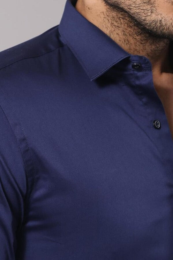 WSS Cotton Satin Slim Fit Navy Blue Men Shirt - Bagnolet