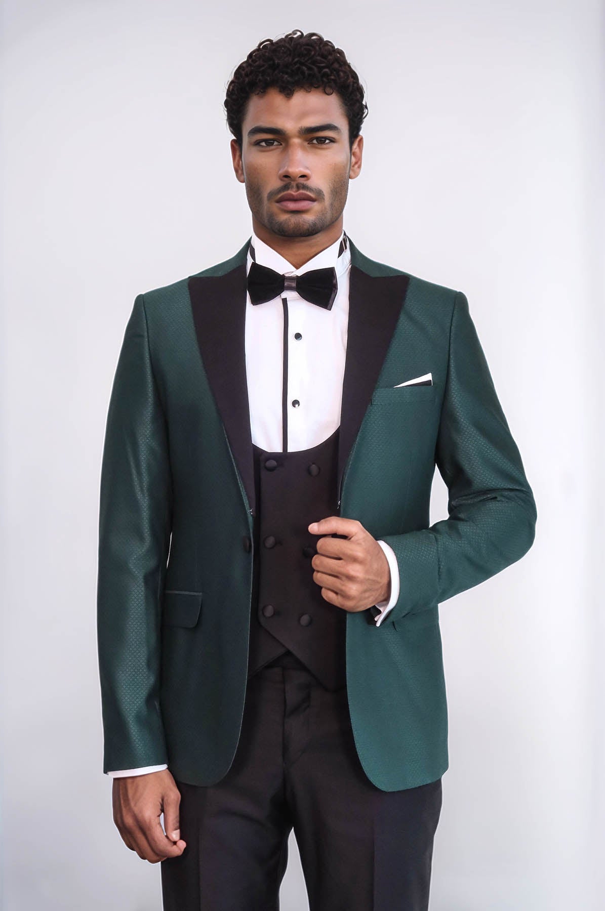 WSS Double Breasted Patterned Green Men Tuxedo - Bountiful