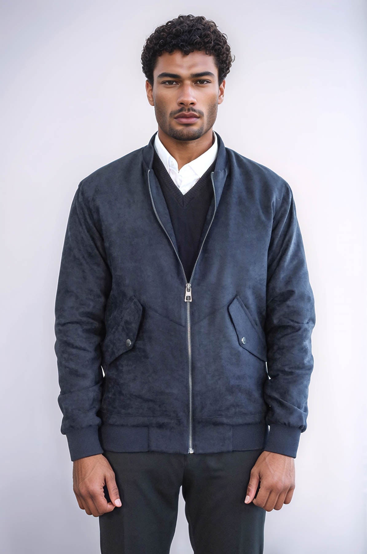 WSS Flap Pockets Suede Dark Blue Men Bomber Coat - Guadalajara