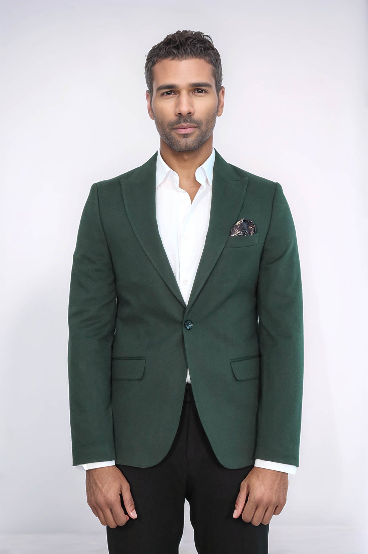 WSS Peak Lapel Single Button Plain Green Men Blazer - Port Huron