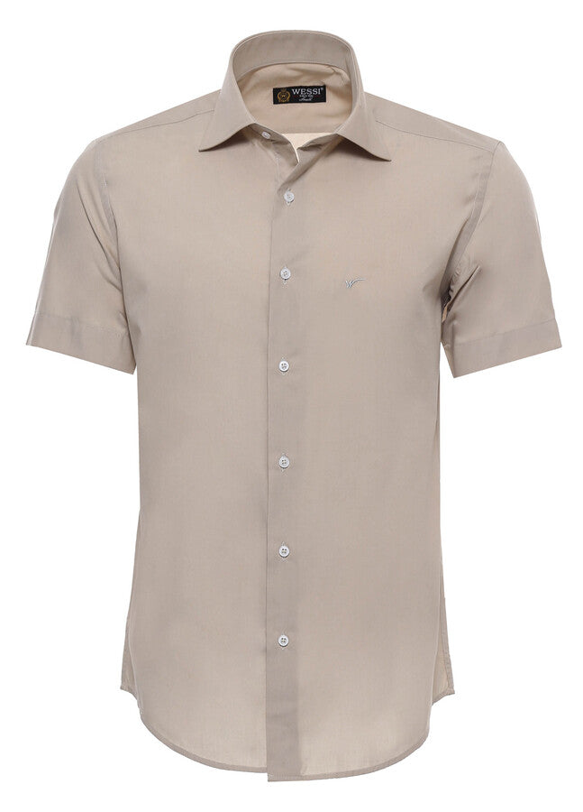 WSS Short Sleeves Poly Cotton Slim Fit Cream Men Shirt  - Oakley