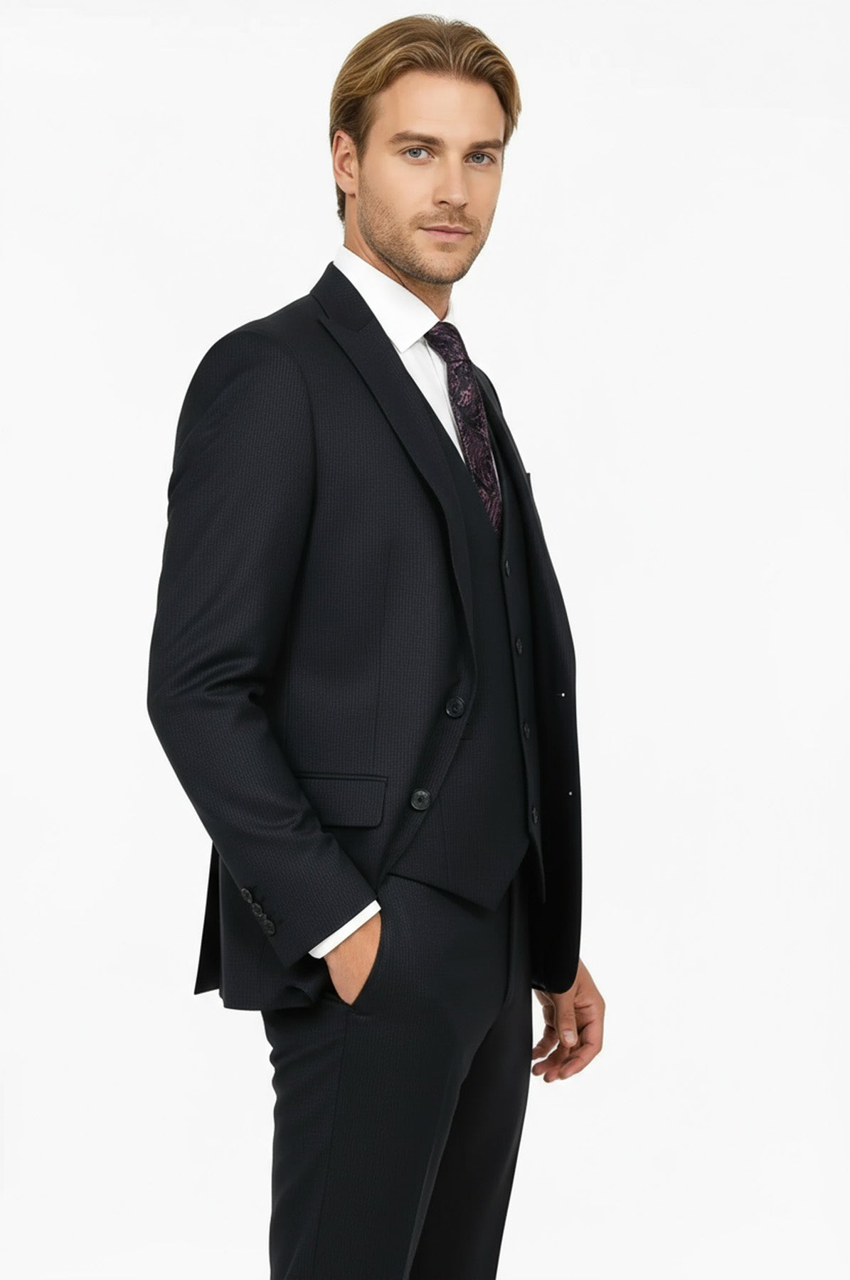 WSS Slim Fit Patterned Navy Blue Men Suit - Cape Coral