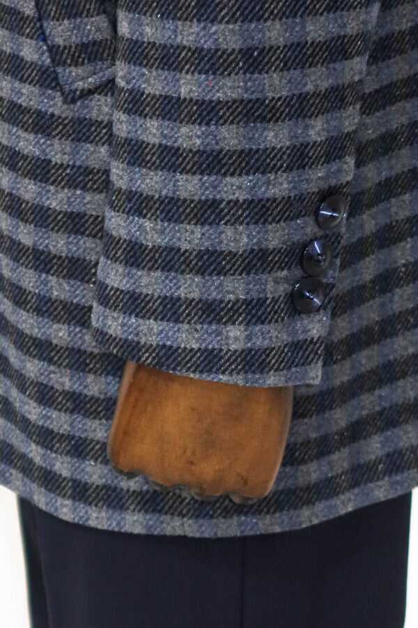 WSS Cachet Plaid Wide Lapel Slim Fit Navy Blue Men Coat - Túxpam de Rodríguez Cano