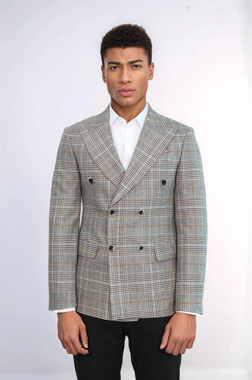 WSS Double Breasted Checked Anthracite Men Blazer - Rimini