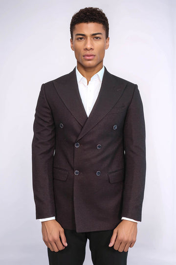 WSS Houndstooth Patterned Burgundy Men Double Breasted Blazer  - Piatra Neamţ