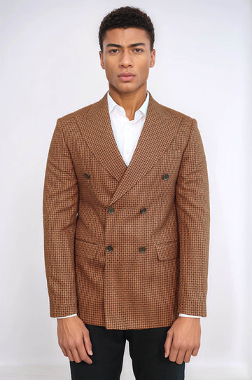 WSS Houndstooth Patterned Tawny Men Double Breasted Blazer - Annecy