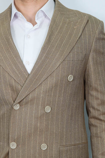WSS Striped Double Breasted Light Brown Men Blazer - Runcorn