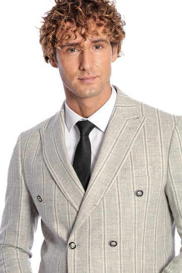 WSS Wide Lapel Striped Double Breasted Grey Men Blazer - Wiesbaden