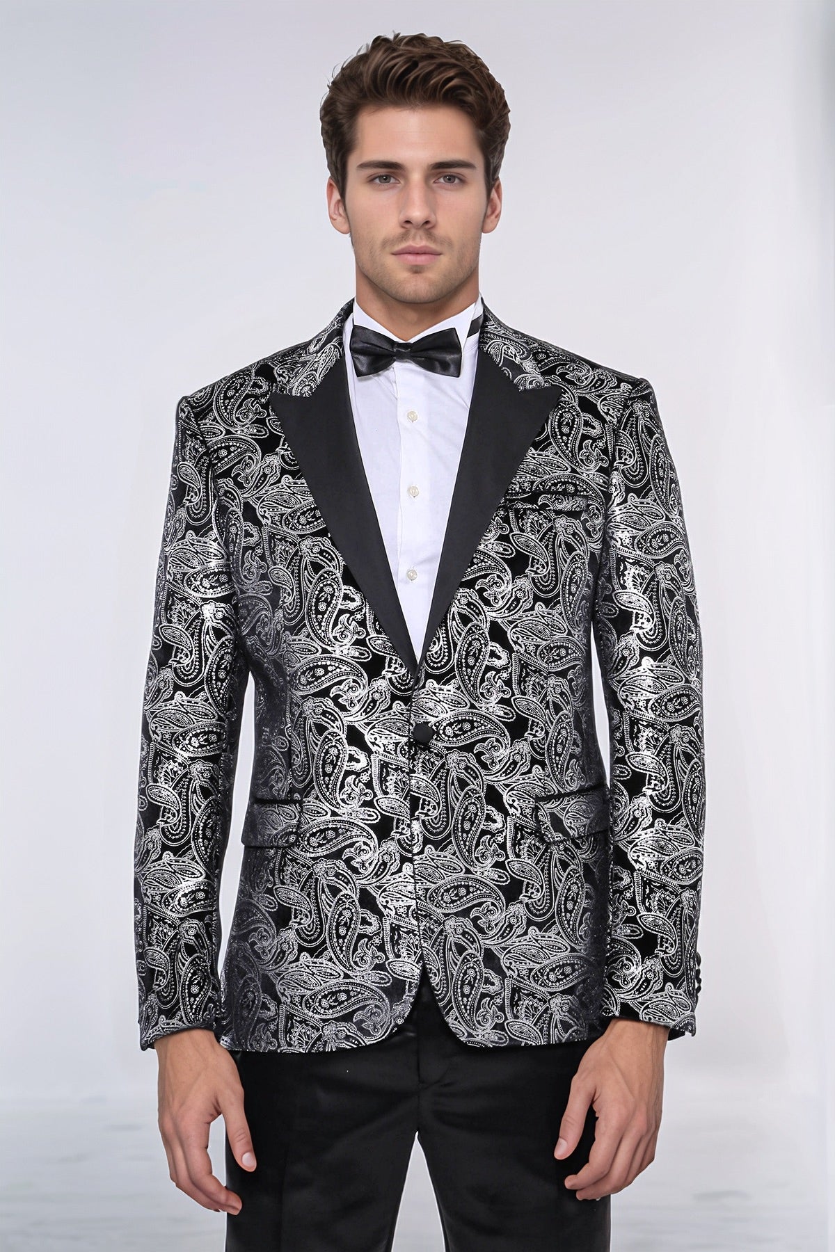 Step into luxury with the Gold Patterned Over Grey Men Party Blazer from Wessi. This premium blazer exudes sophistication and exclusivity with its shimmering gold pattern over a sleek grey backdrop. Elevate your party attire and make a statement with this tasteful and elegant addition to your wardrobe.