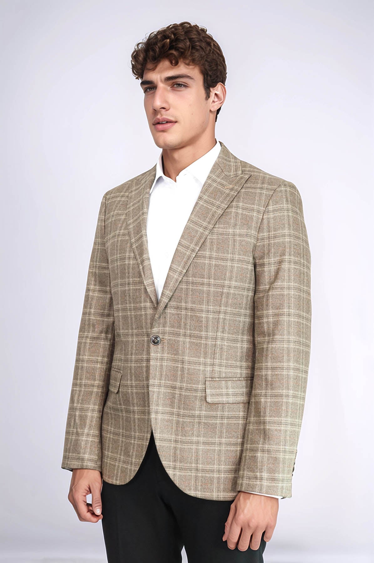 WSS Slim Fit Peak Lapel Checked Grey Men Blazer - Terre Haute
