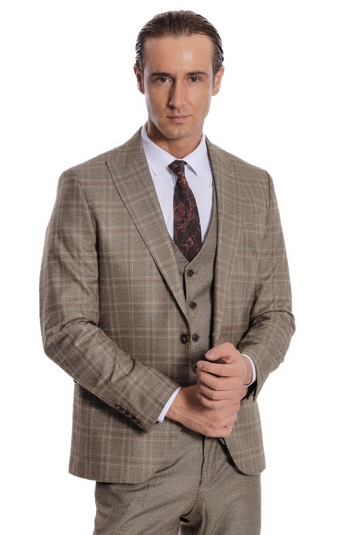 WSS Checked Slim Fit Brown Men Suit - Rochester Hills