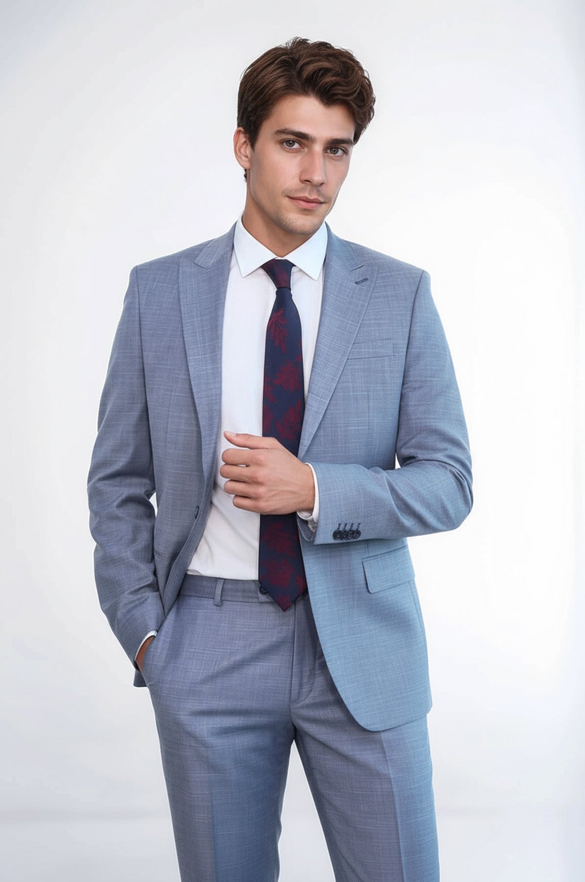 WSS Two Piece Slim Fit Single Button Grey Blue Men Suit - Maladzyechna
