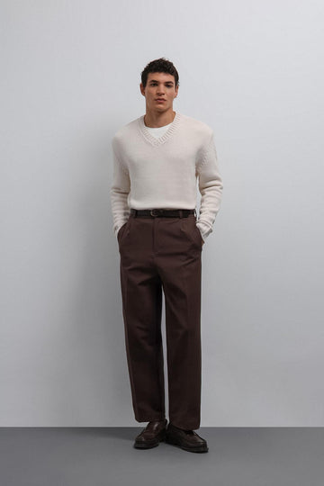 ANT Antioch Ecru Textured V-Neck Men's Sweater - Bari