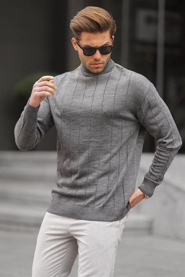 MDX Anthracite Slim Fit Half Fisherman Collar Striped Non-Fluffy Men's Sweater 6344 - Würzburg