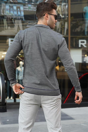 MDX Anthracite Zippered Polo Collar Knit Men's Sweater 6823 - Stockport