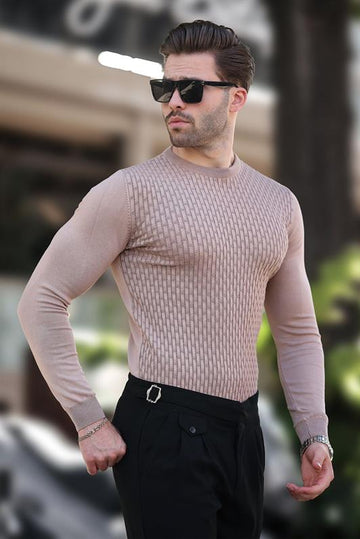 MDX Beige Patterned Men's Knit Sweater 7266 - Hoogeveen