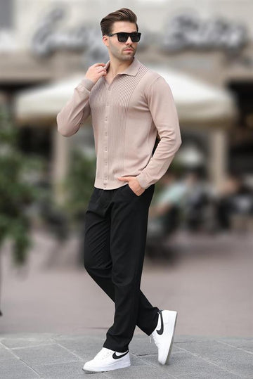 MDX Beige Polo Neck Striped Button Detail Men's Sweater 7281 - Invercargill