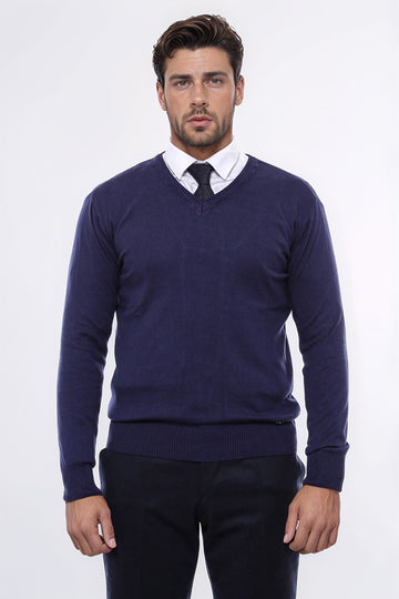 WSS V Neck Navy Blue Men Sweater - Hattingen