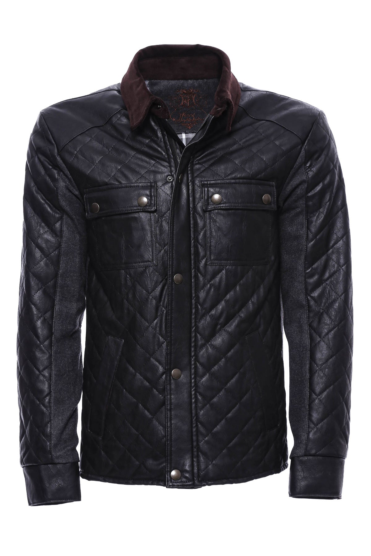WSS Velvet Neck Zippered 4 Pockets Snap Buttones Quilted Black Men Leather Coat Jacket - Henderson