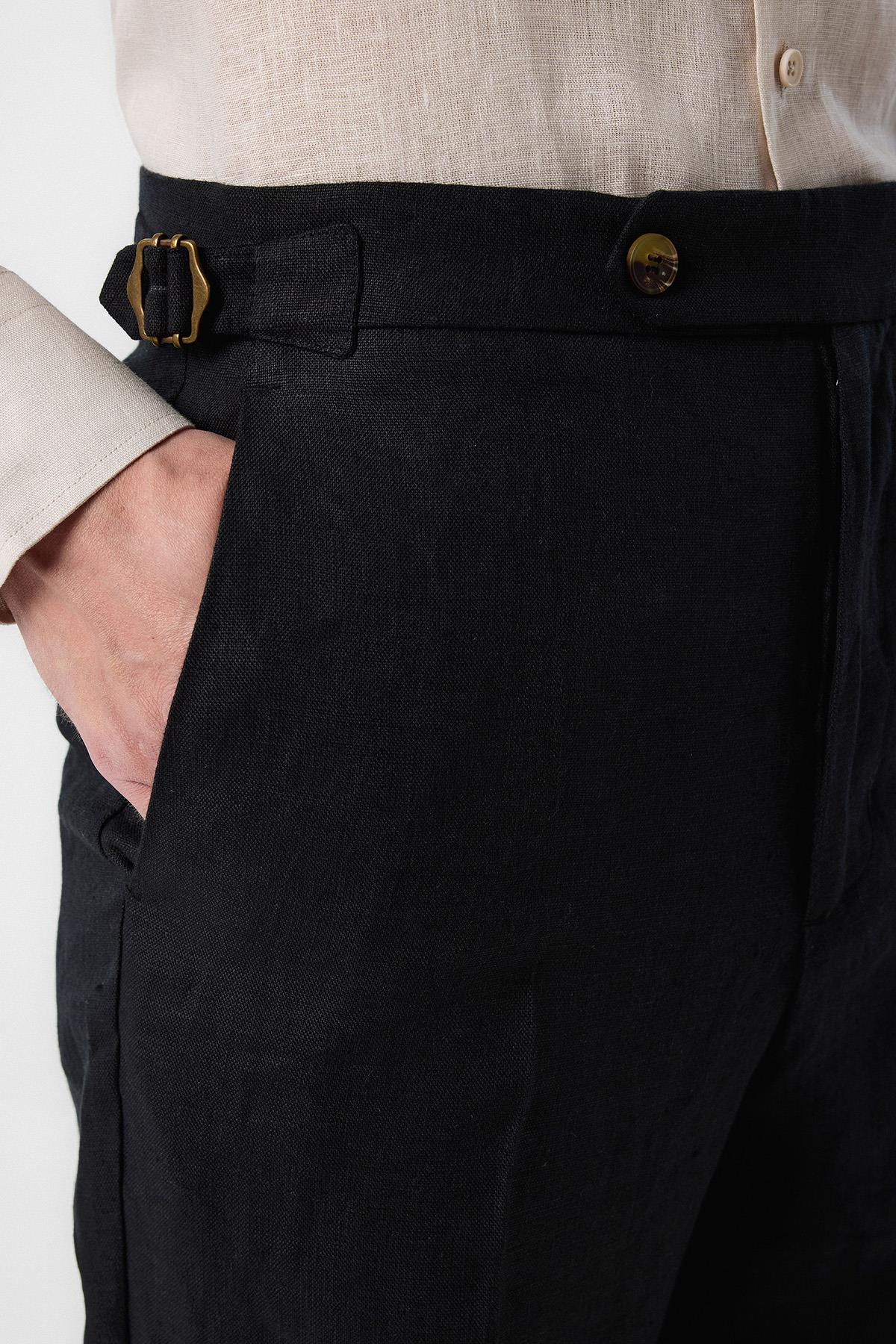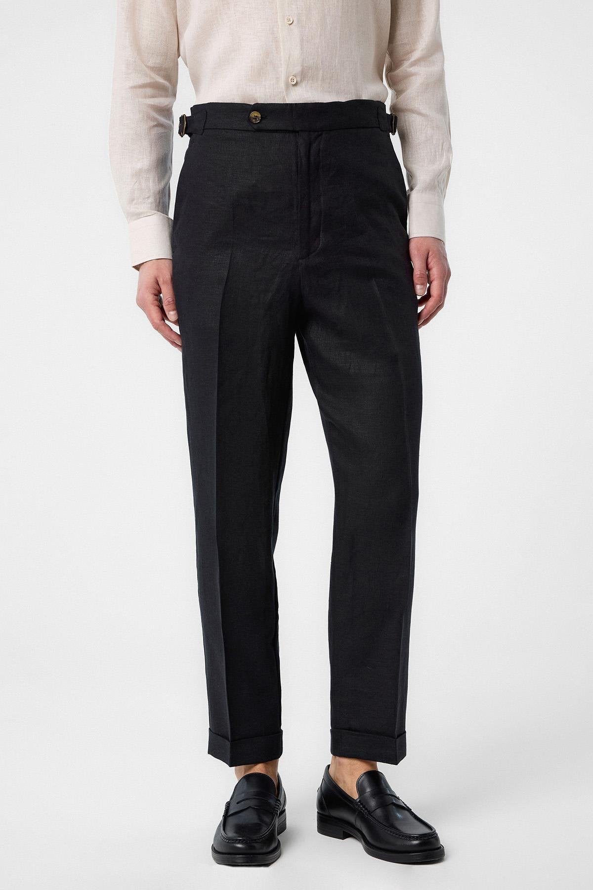 ANT Antioch Black 100% Linen Italian Cut Men's Trousers - Vannes