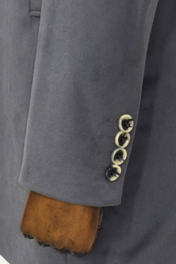 Crafted with meticulous attention to detail, our suede long coat exudes elegance and refinement. The slim fit silhouette accentuates your physique, while the luxurious suede fabric adds a touch of opulence to your ensemble. This exquisite garment is designed to elevate your style and keep you cozy during the winter and autumn seasons. This versatile coat is a must-have for any fashion-forward gentleman. Whether you're strolling through the city streets or attending a formal event, it effortlessly complements your outfit, making a bold statement wherever you go. With two practical pockets, this coat combines style with functionality. Conveniently store your essentials, such as keys, wallet, or smartphone, while maintaining a sleek and streamlined appearance. Pair the grey suede long coat with slim-fit black trousers, a white shirt, and a patterned tie for a refined and sophisticated look. For a more casual yet stylish outfit, complete the look the coat over a cozy sweater, jeans, and suede Chelsea boots. Or embrace a monochromatic look by pairing the grey suede long coat with shades of grey or black. Opt for a charcoal turtleneck, black trousers, and suede ankle boots for a sleek and polished appearance.