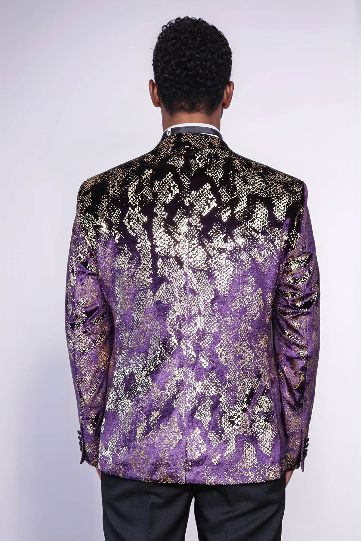 WSS Peak Lapel Slim Fit Gold Patterned Purple Men Singer Tuxedo Blazer - Coquitlam