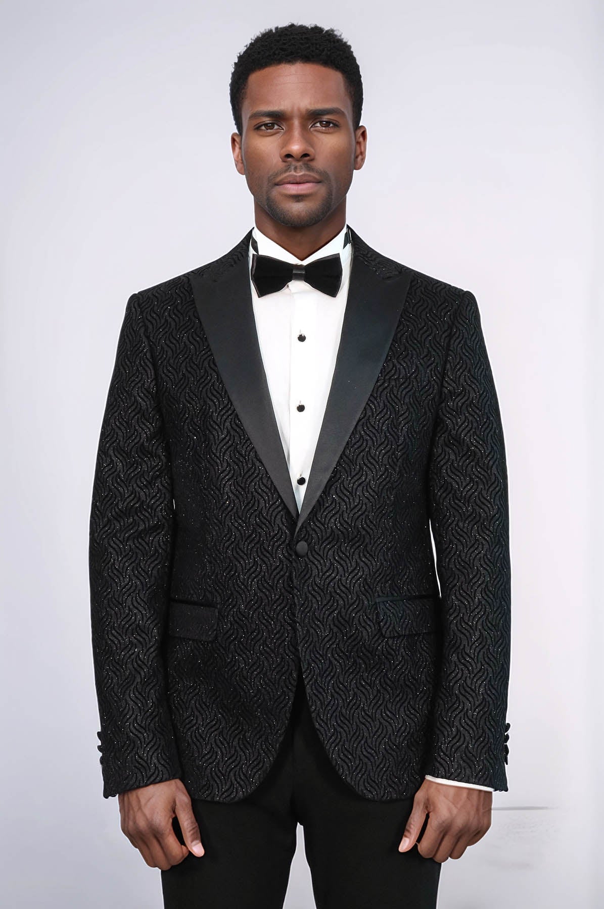 WSS Shiny Patterned Black Men Wedding Tuxedo Blazer - Ratingen