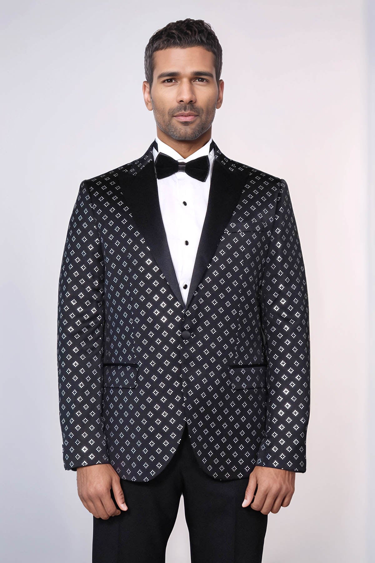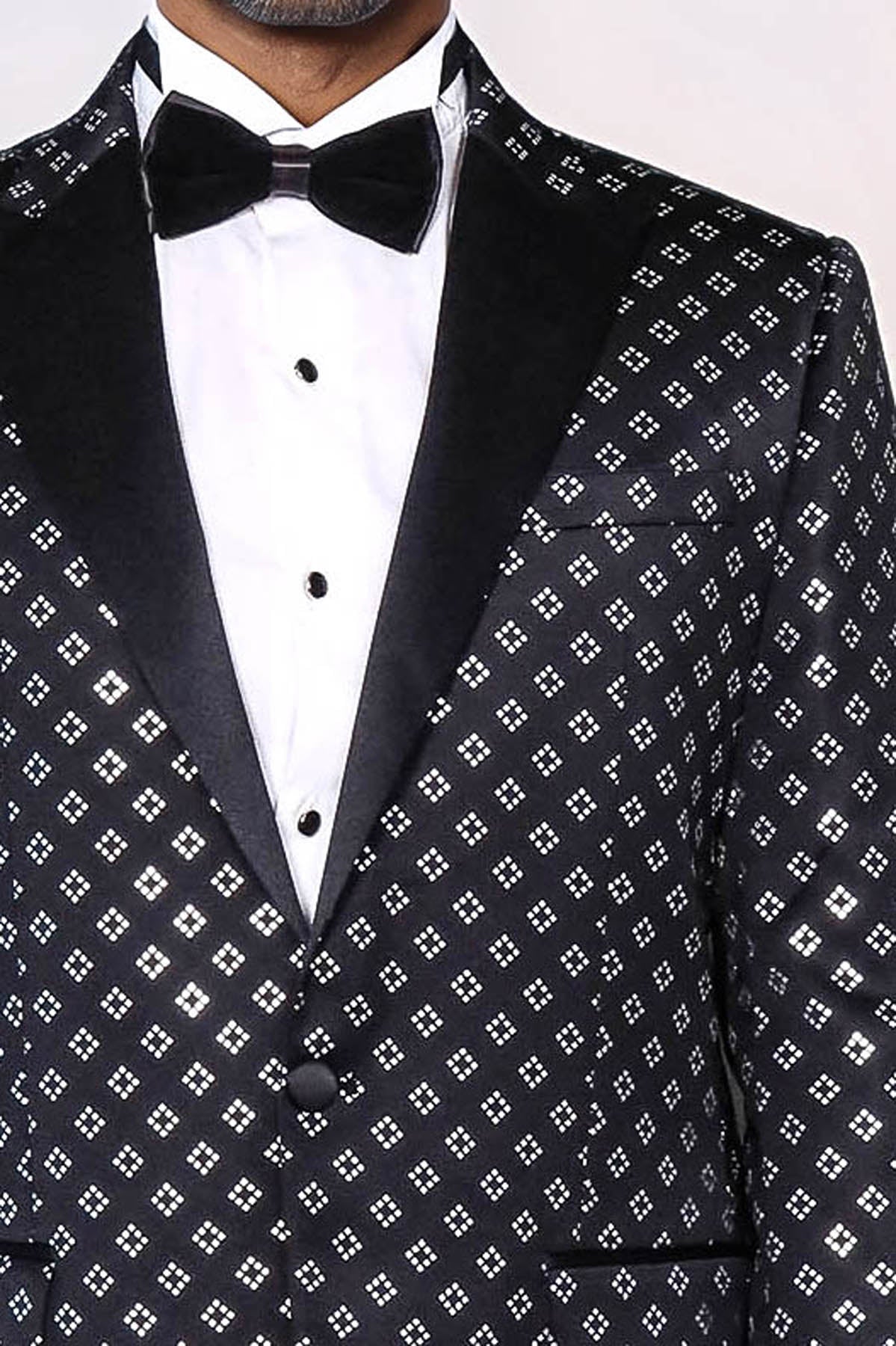 WSS Silver Diamond Pattern Over Black Men Party Tuxedo Blazer - Cuneo