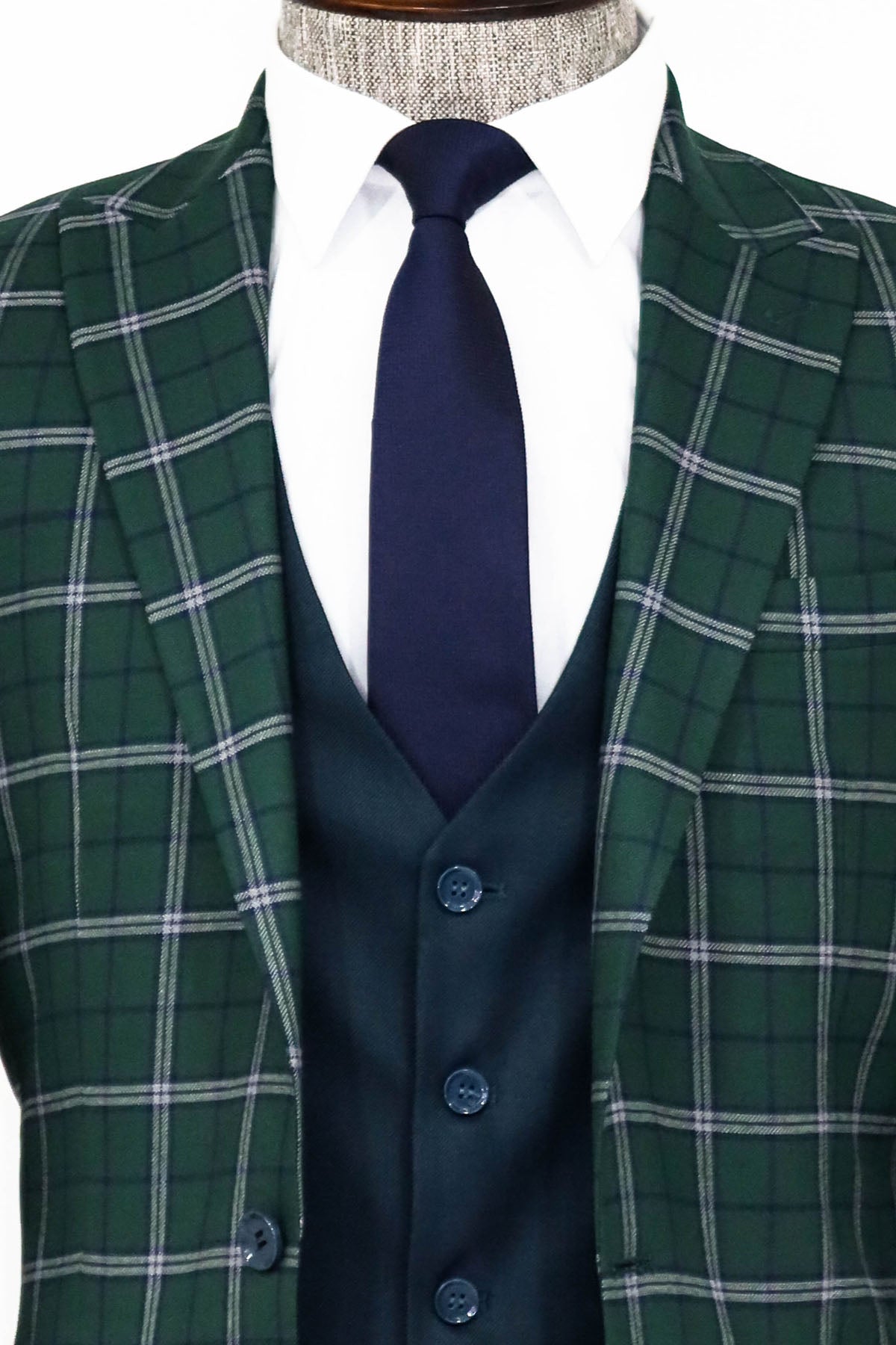 WSS Blue Vested Slim Fit Checked Green Men Suit and Shirt Combination - Titusville