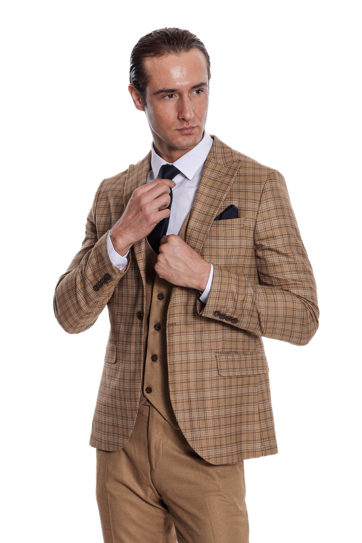 WSS Checked Slim Fit Tan Men Suit - Mayagüez