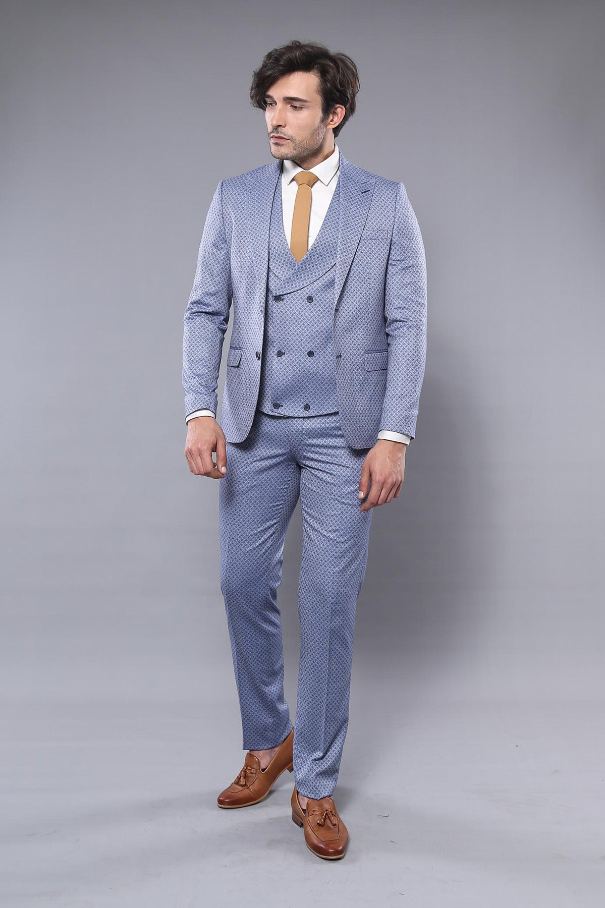 WSS Self Patterned Vested Blue Suit - Waxahachie