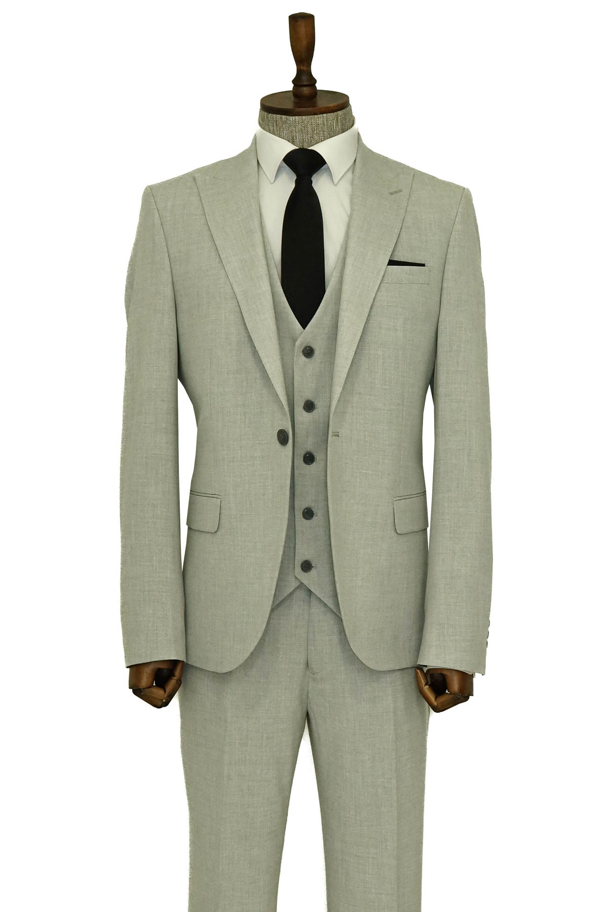 WSS Three Piece Slim Fit Single Button Grey Men Suit - Georgetown