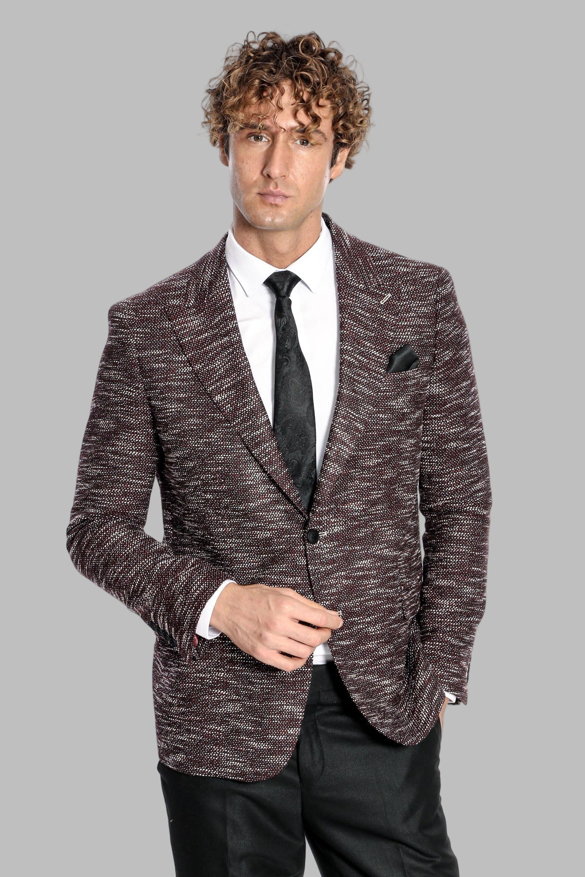 WSS Slim Fit Patterned Sport Burgundy Men Blazer - Famalicão