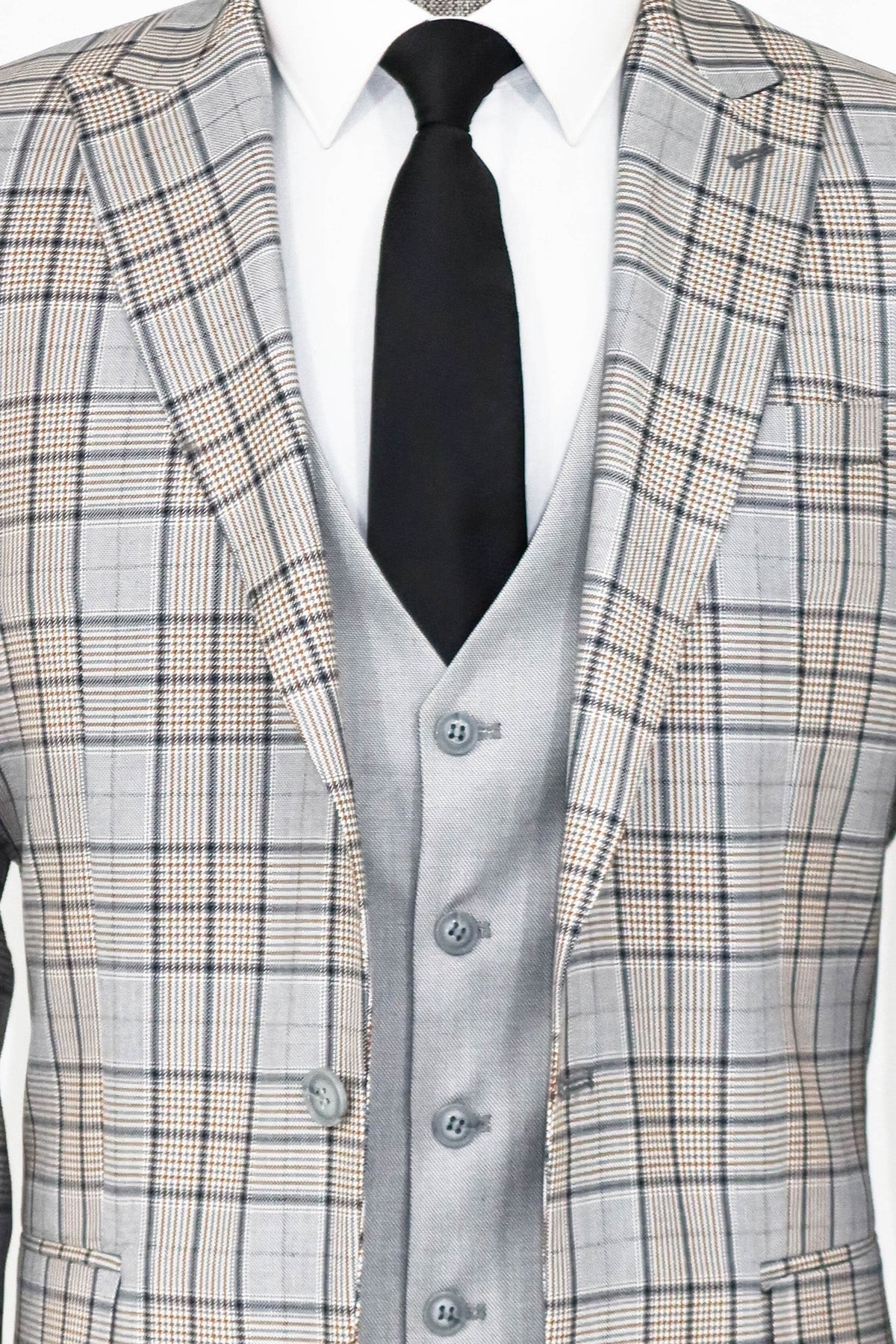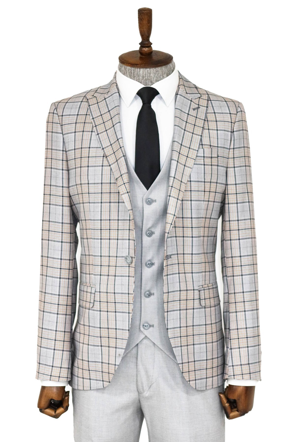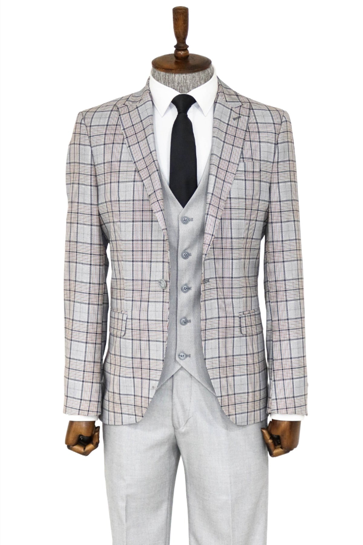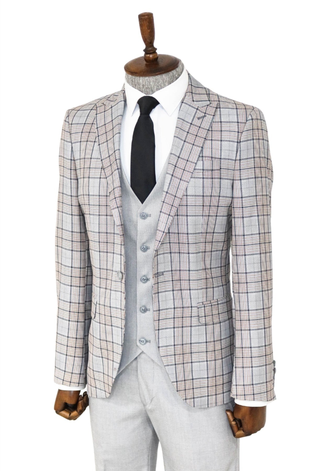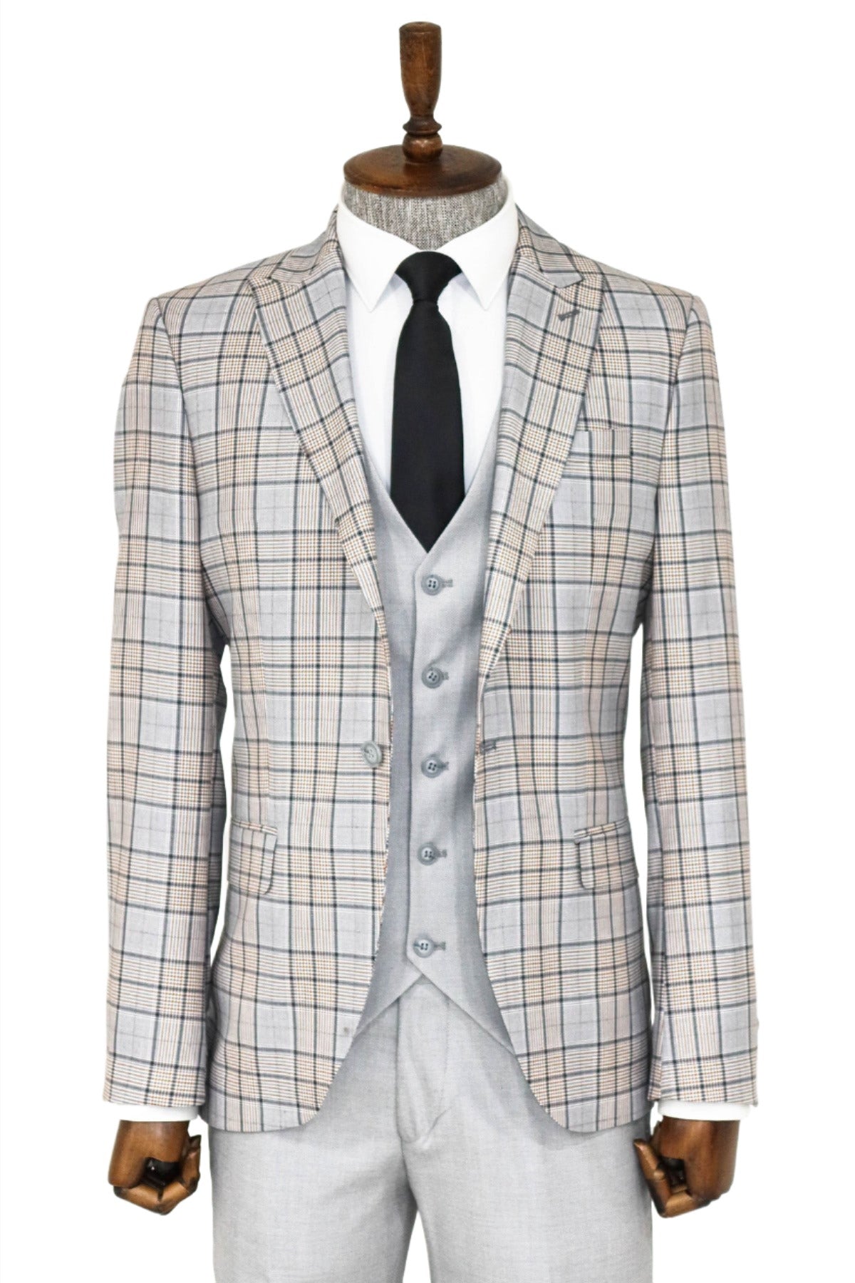WSS Checked Slim Fit Light Grey Men Suit and Shirt Combination - Waterford