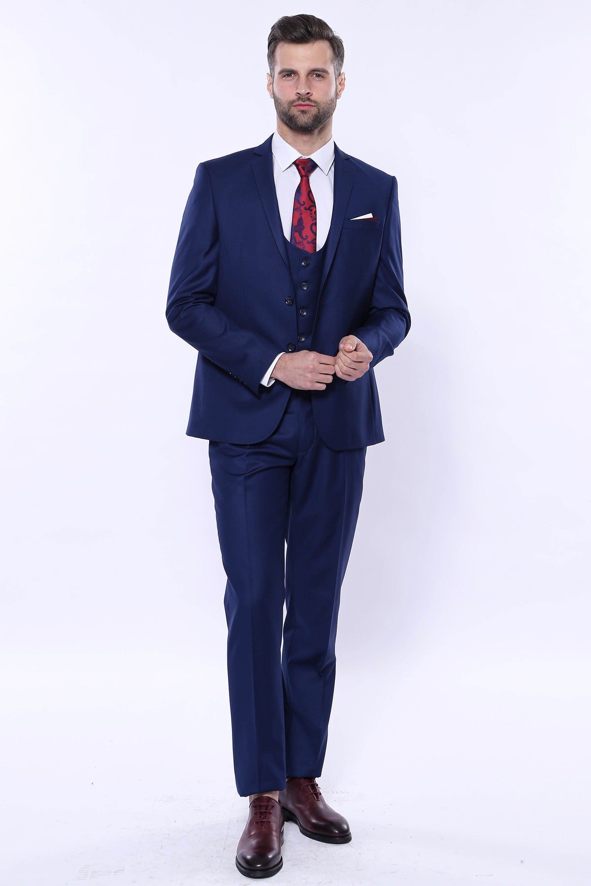WSS Navy Blue Slim Fit Men's Suit with Vest - El Monte
