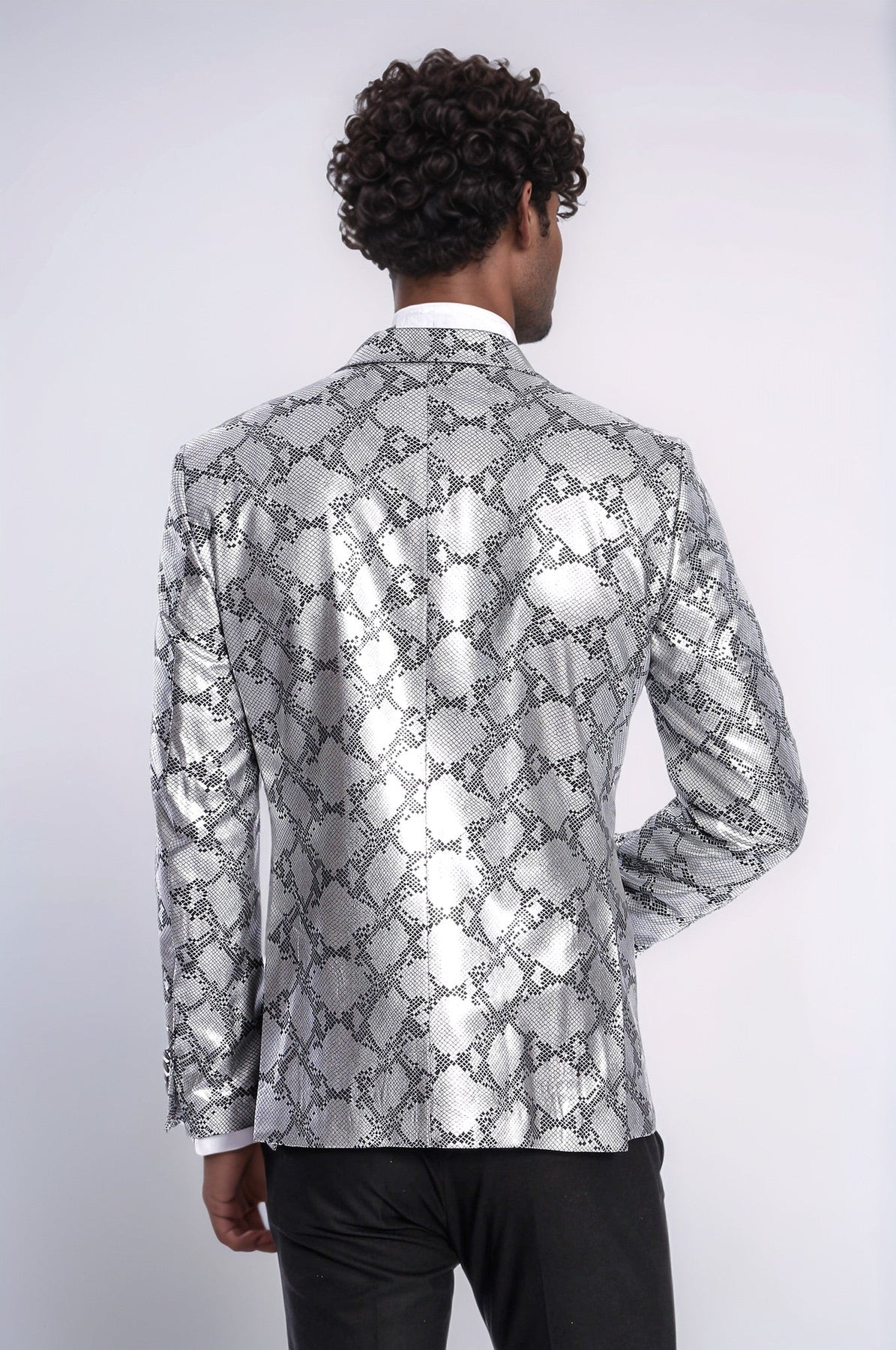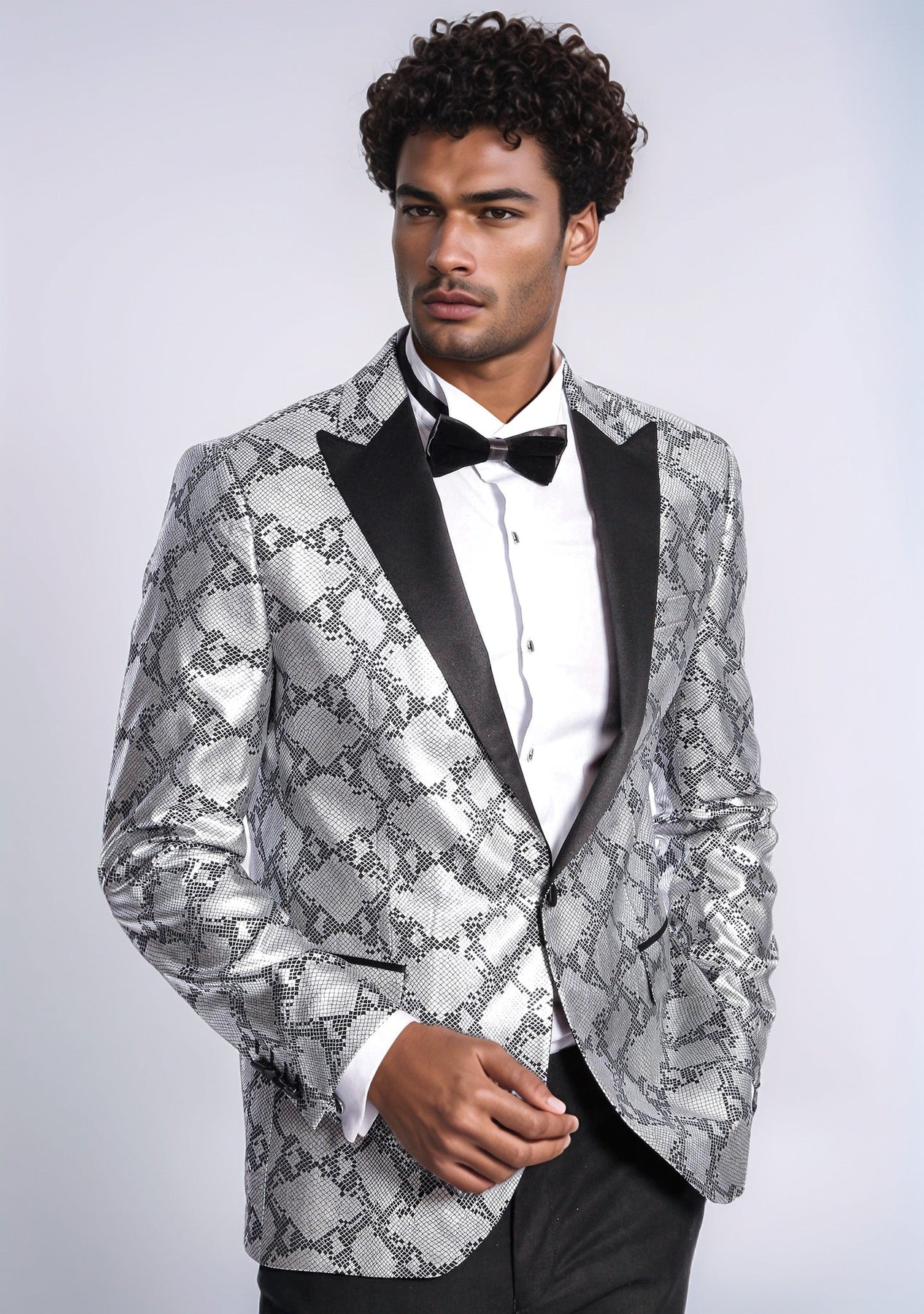WSS Patterned Slim Fit Grey Men Prom Blazer and Trousers Combination Suit - Thérmi