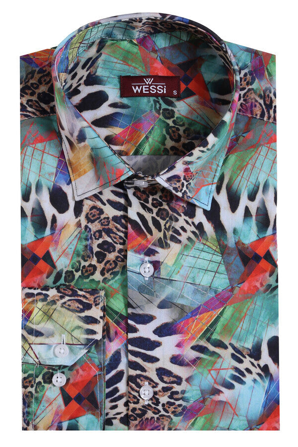 WSS Leopard Pattern Slim Fit Long Sleeves Multicolor Men Shirt - Trois-Rivières