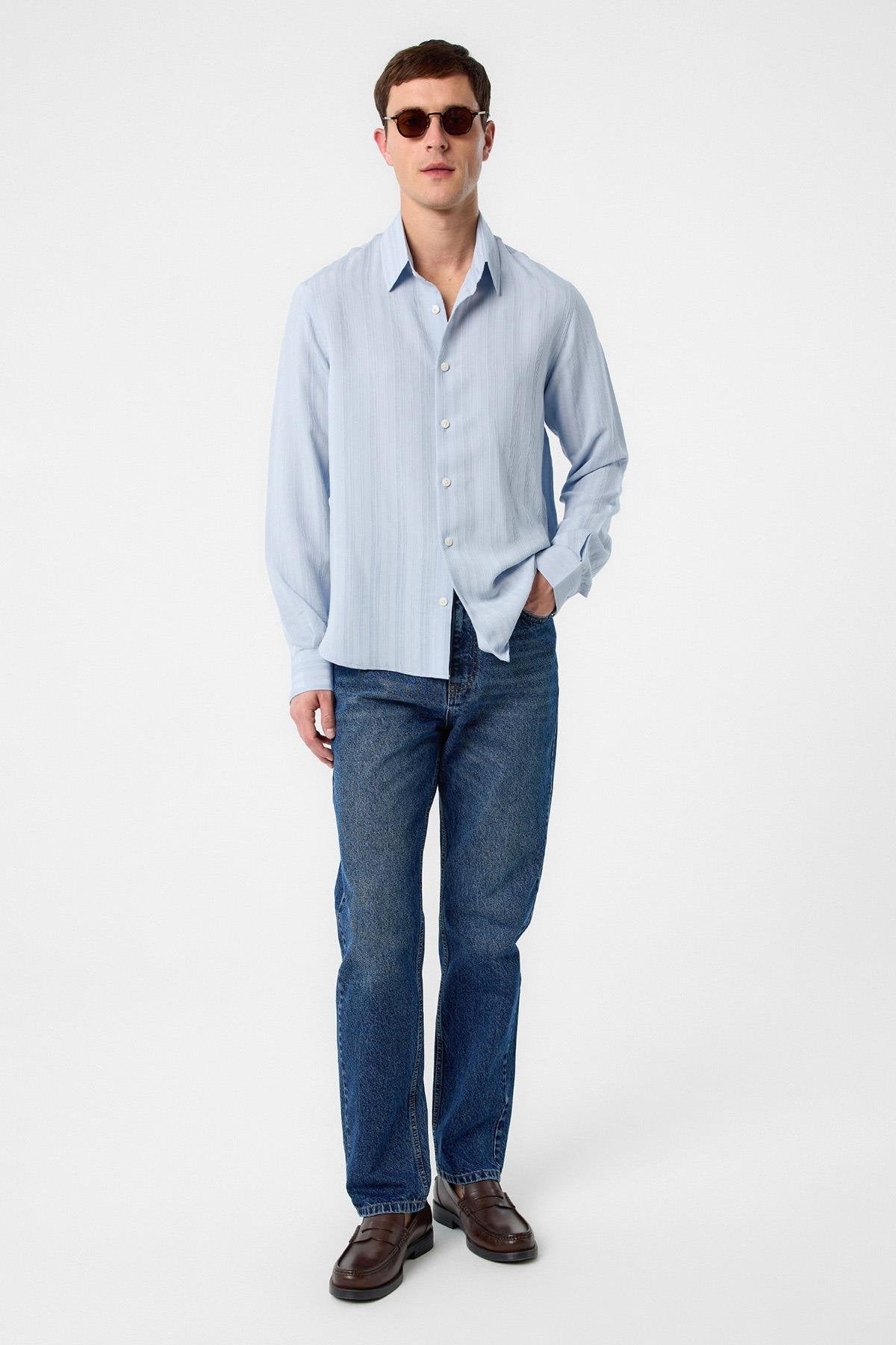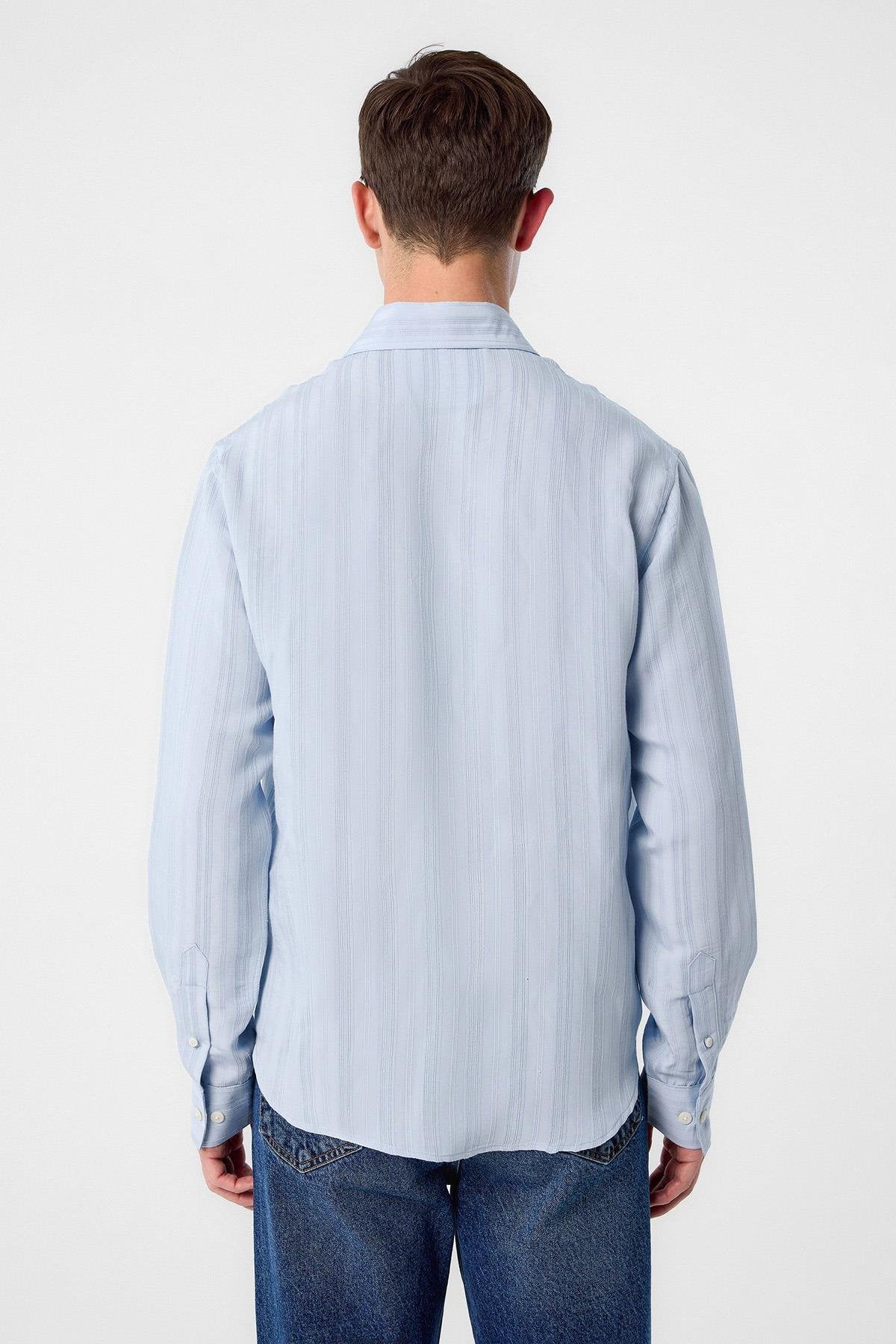 The Antioch Long Sleeve Shirt, which stands out with its unique stance in the dominance of blue, impresses with its luxurious design reflecting a characteristic silhouette. The Long Sleeve design is completed with button closure. The design, which will make you feel extremely comfortable with its luxurious texture and cut, is suitable for use in your daily urban styles and office combinations. You can use the design with various pants according to your preference, allowing you to achieve a stylish and assertive look and take your style one step further.