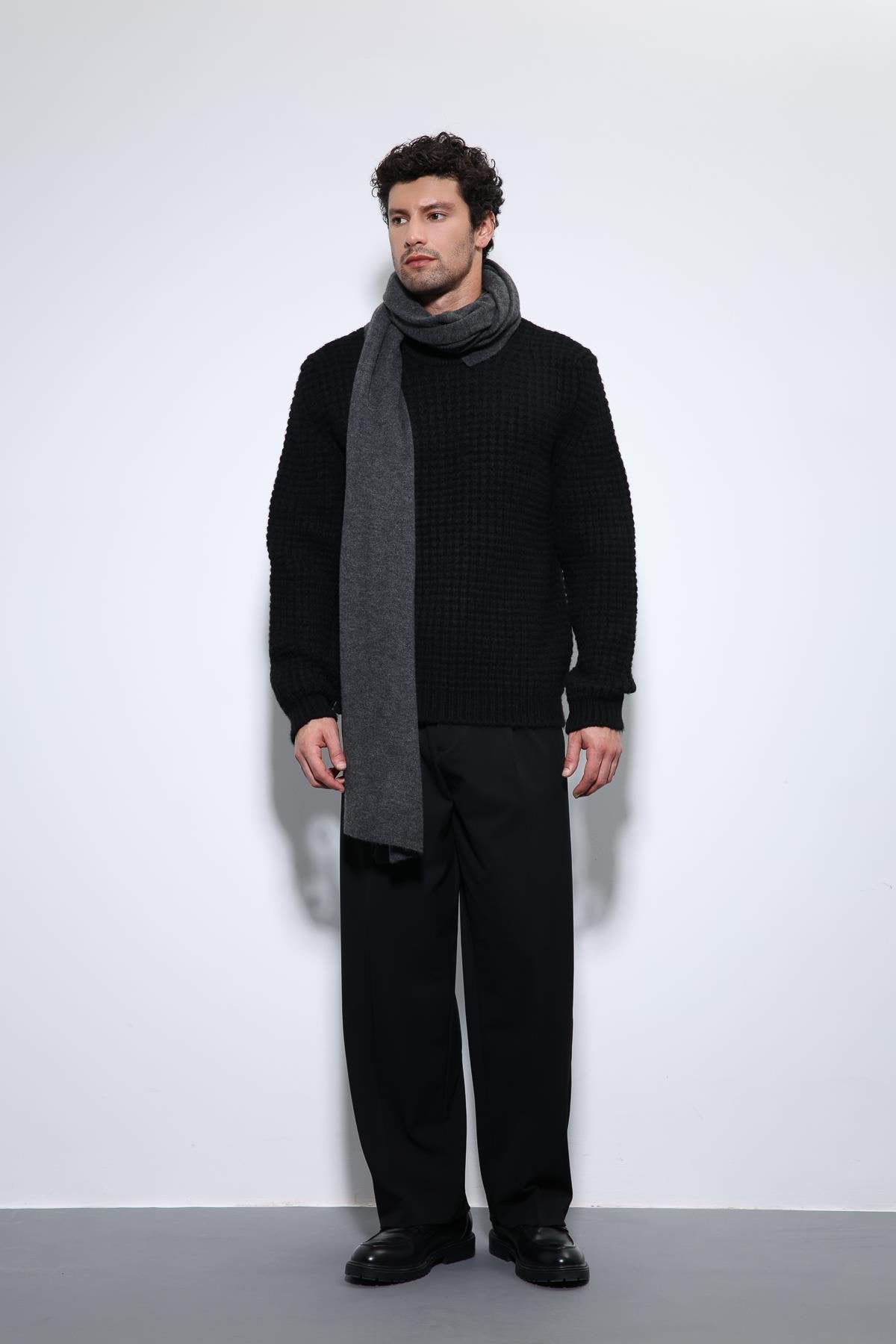 ANT Antioch Black Knitted Texture Men's Sweater - Mouscron
