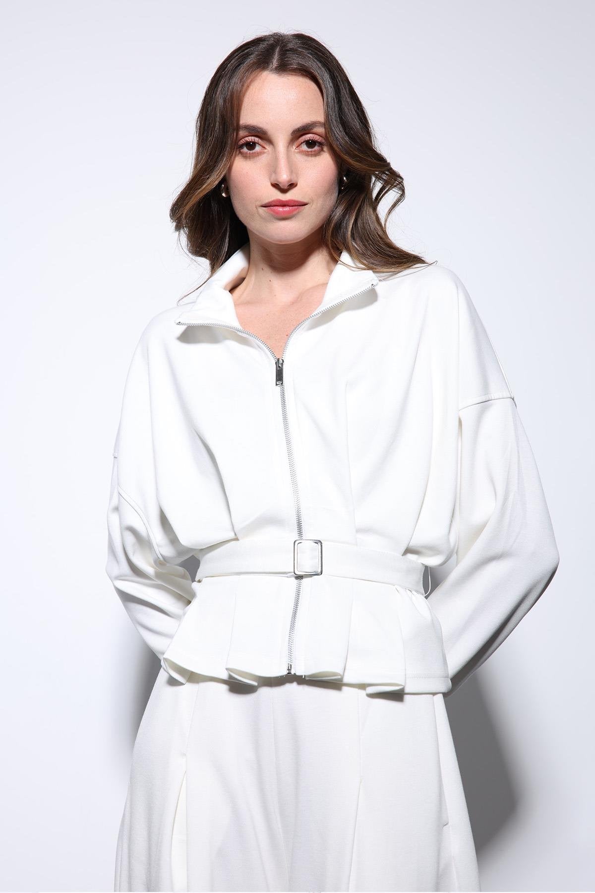 ANT Antioch Ecru Crop Top Wide Leg Pants Suit - Penafiel