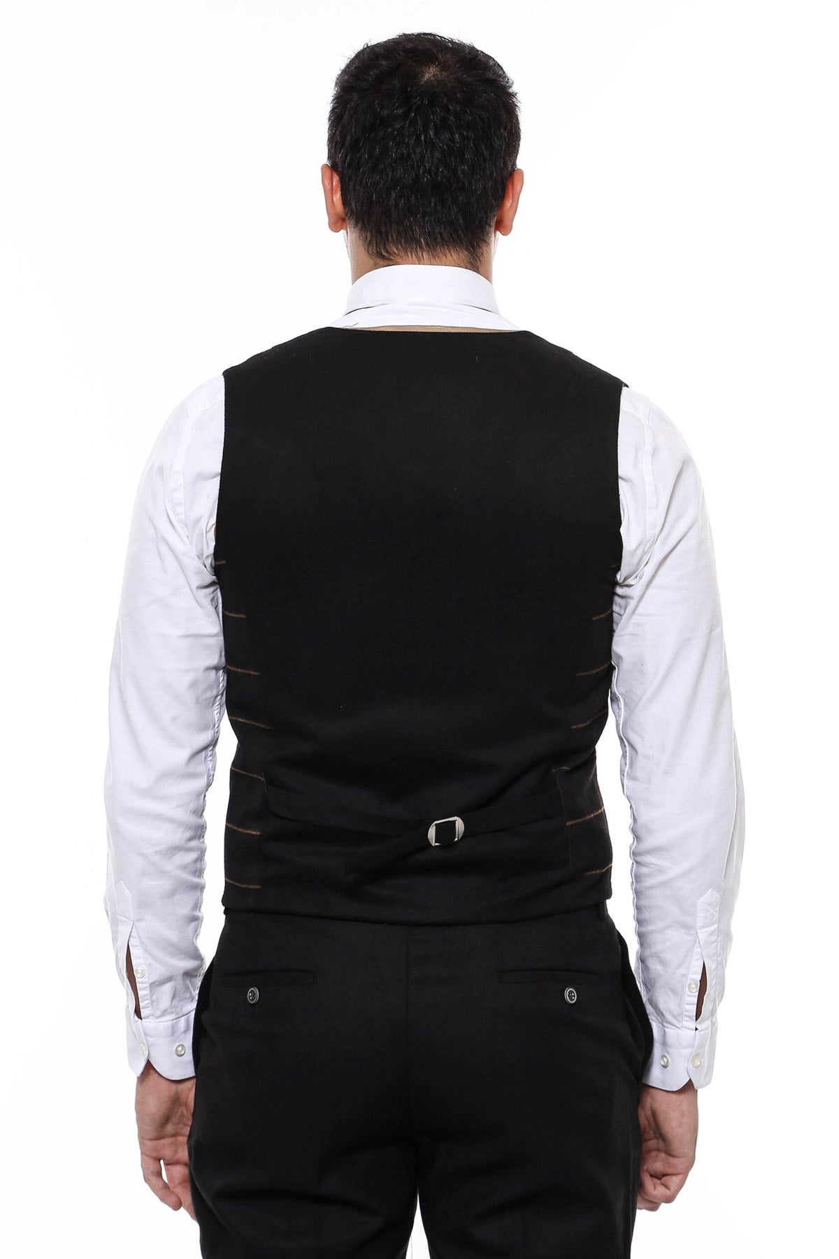 Experience sleek and modern style with our Black Men Vest Pants Set from Wessi. This set is designed with a sharp black color, perfect for any occasion. Made with high-quality materials, it offers a comfortable fit and a professional look. Elevate your wardrobe with this stylish set.