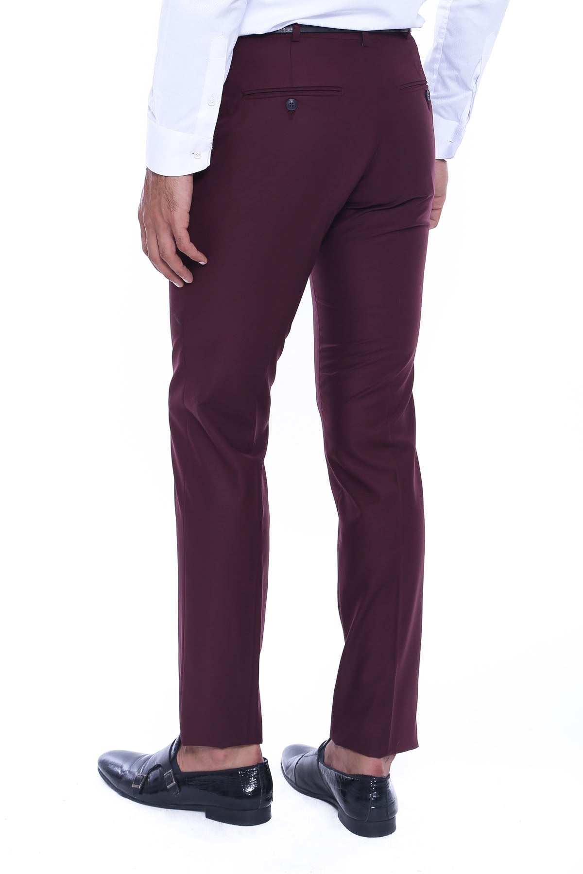 WSS Burgundy Slim Fit Plain Men Pants - Castelo Branco