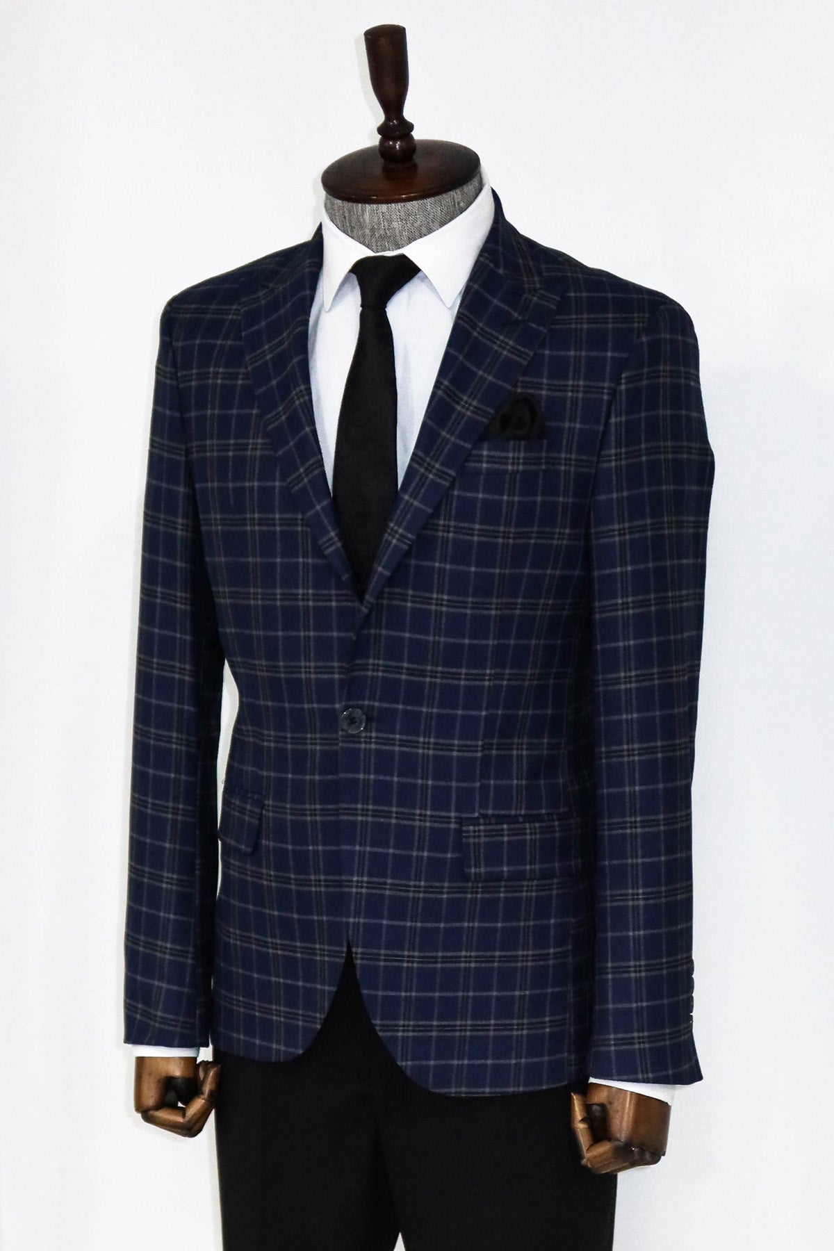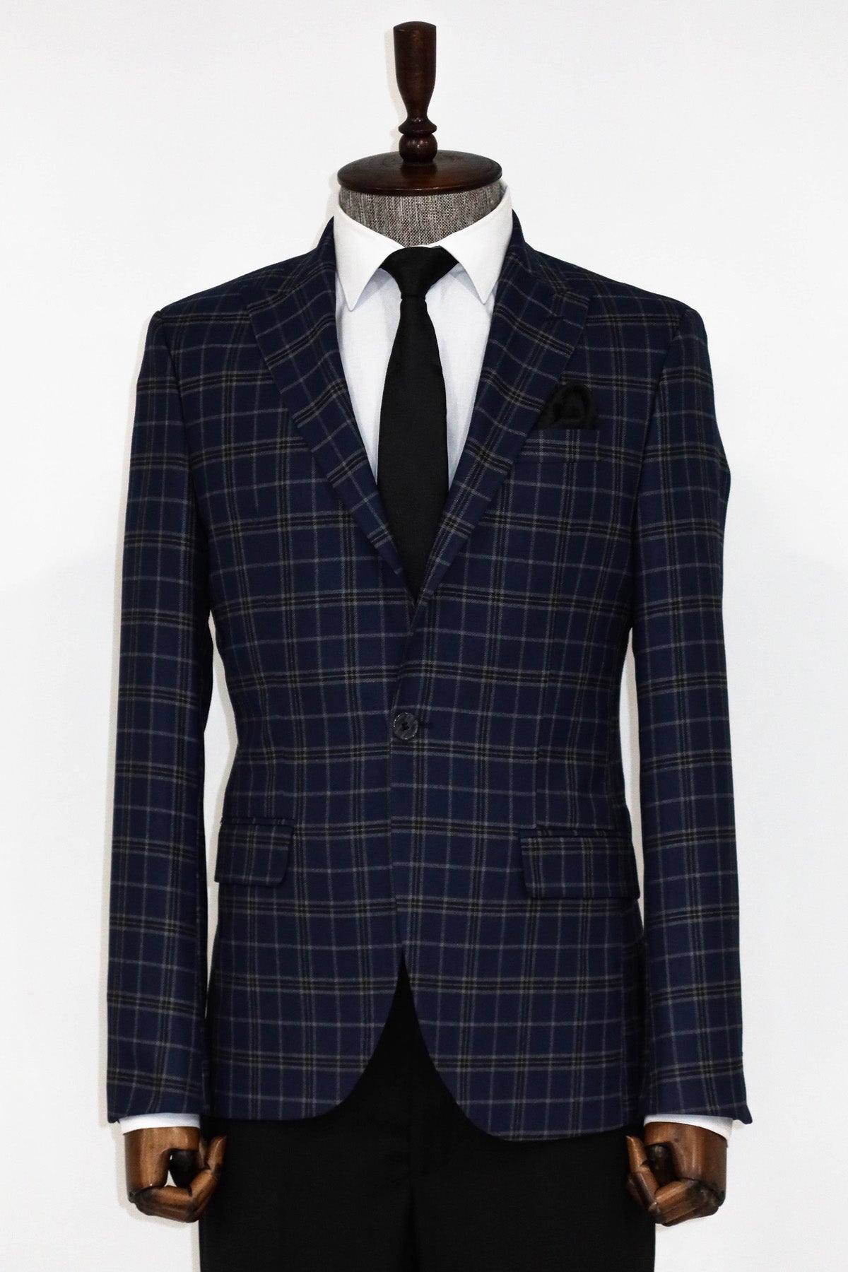WSS Checked Navy Blue Men Blazer and Trousers Combination - Mesa