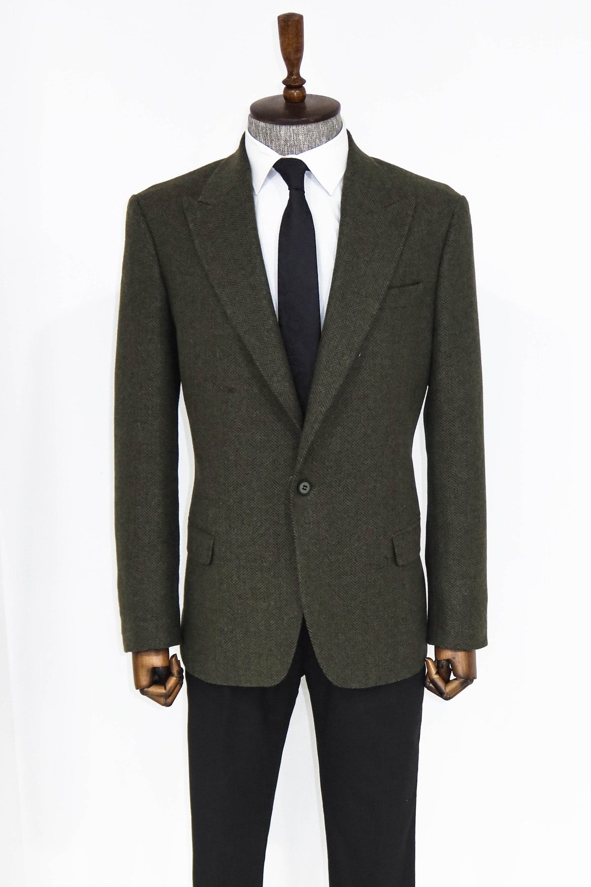WSS Houndstooth Wool Dark Green Men Blazer and Trousers Combination - Pärnu