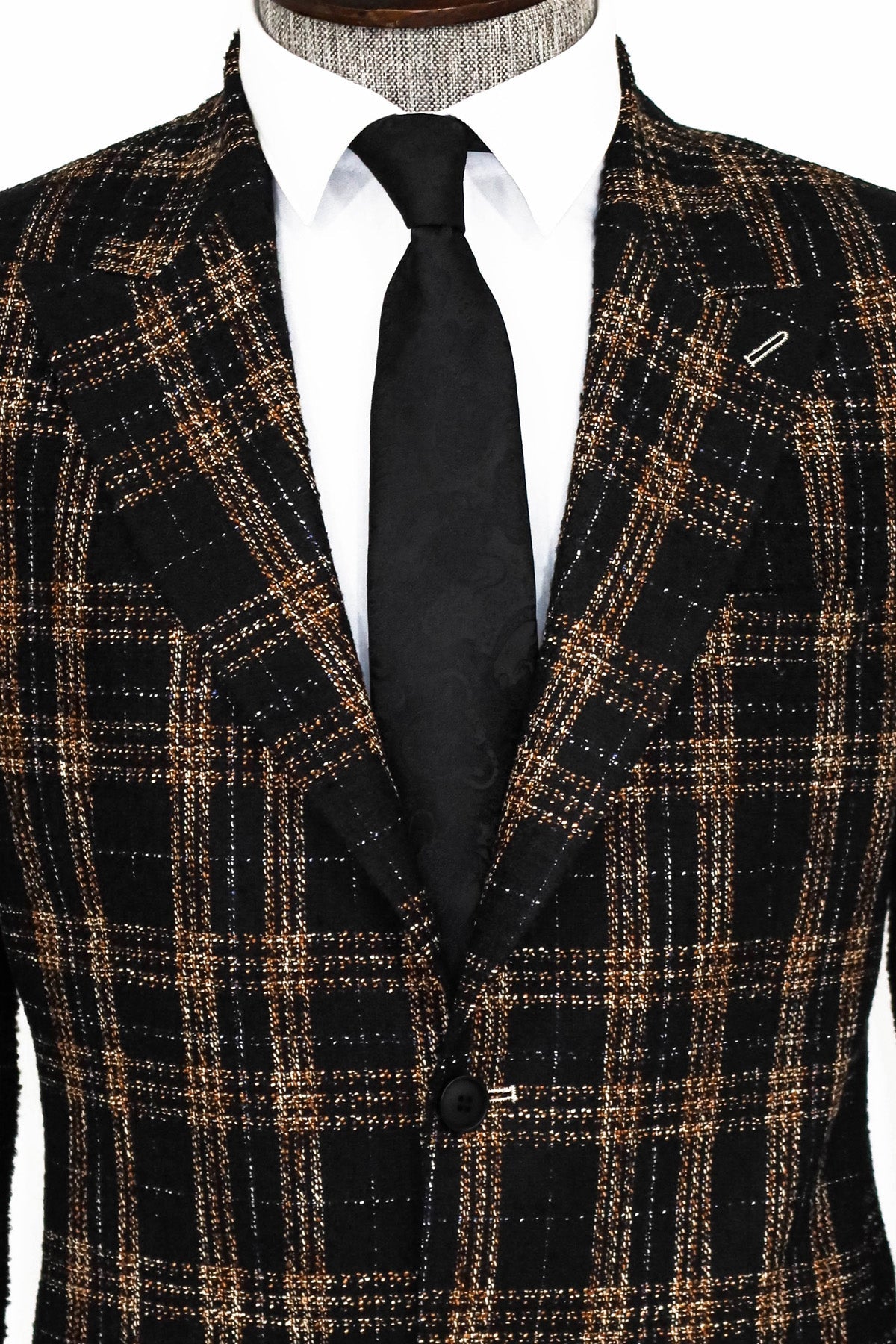 WSS Plaid Slim Fit Black Men Blazer and Trousers Combination - Riviera Beach