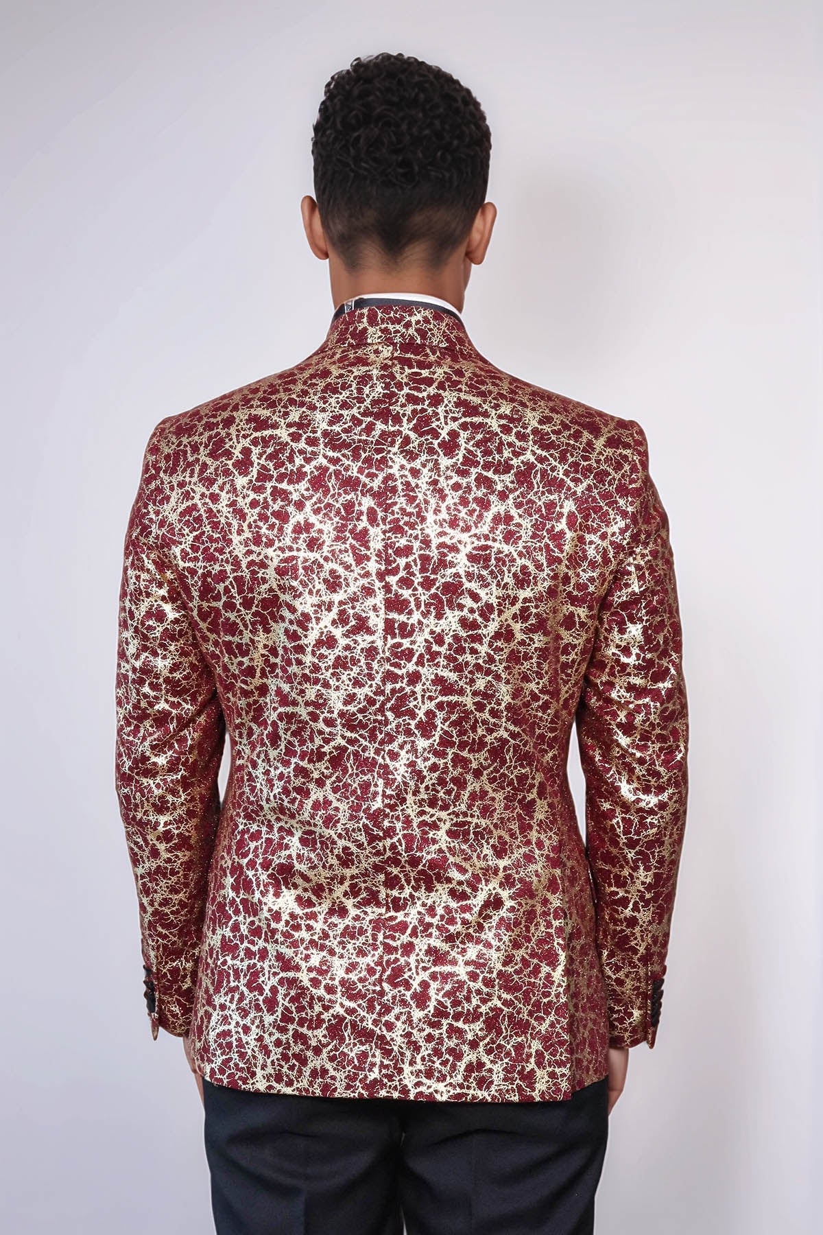 WSS Root Pattern Peak Lapel Burgundy Men Prom Blazer and Trousers Combination Suit - Maddaloni