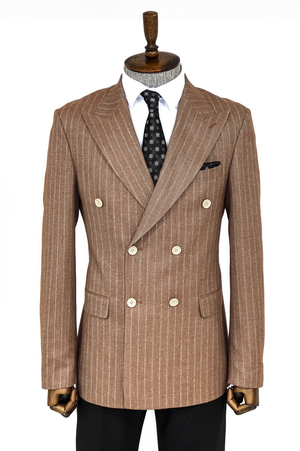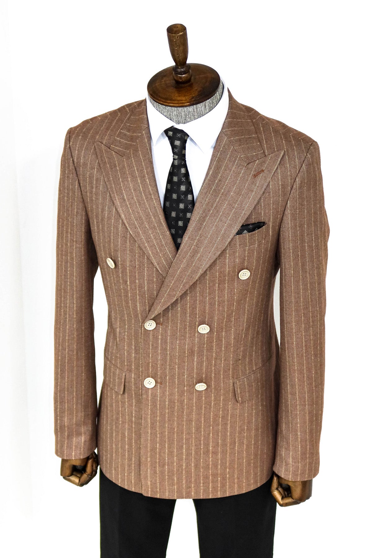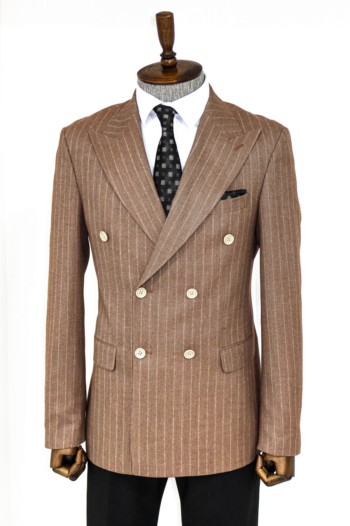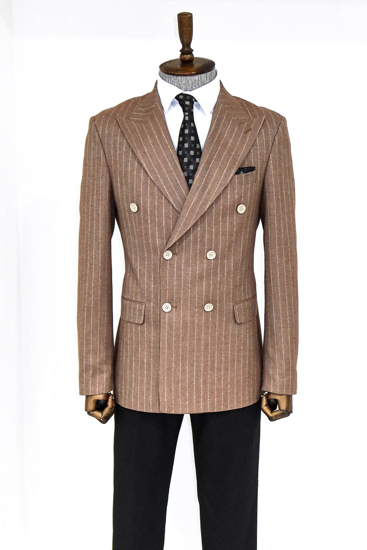 WSS Striped Double Breasted Beige Men Blazer and Trousers Combination - Dráma
