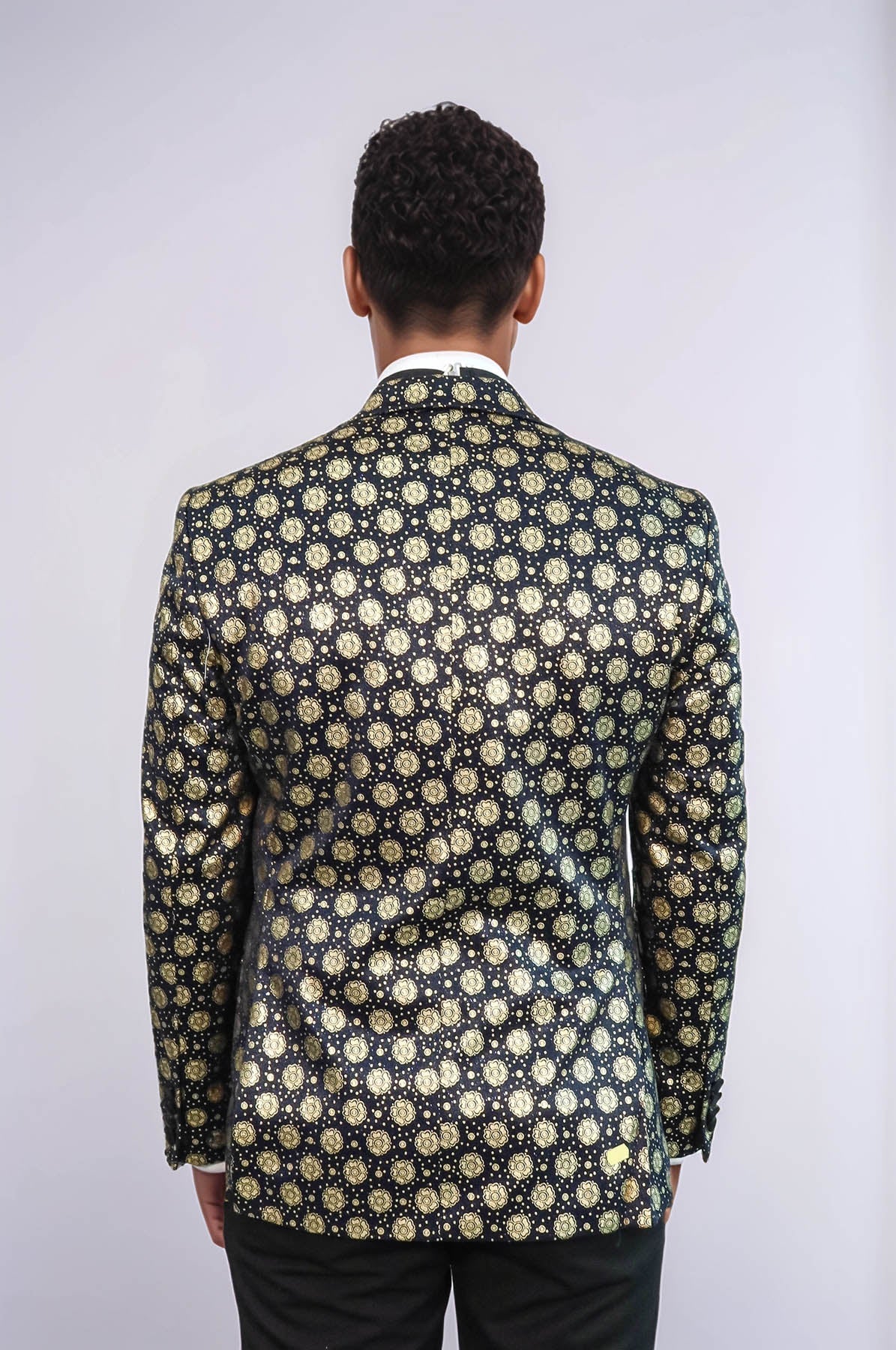 WSS Floral Patterned Peak Lapel Navy Blue with Gold Embellished Dinner Jacket - Botoşani
