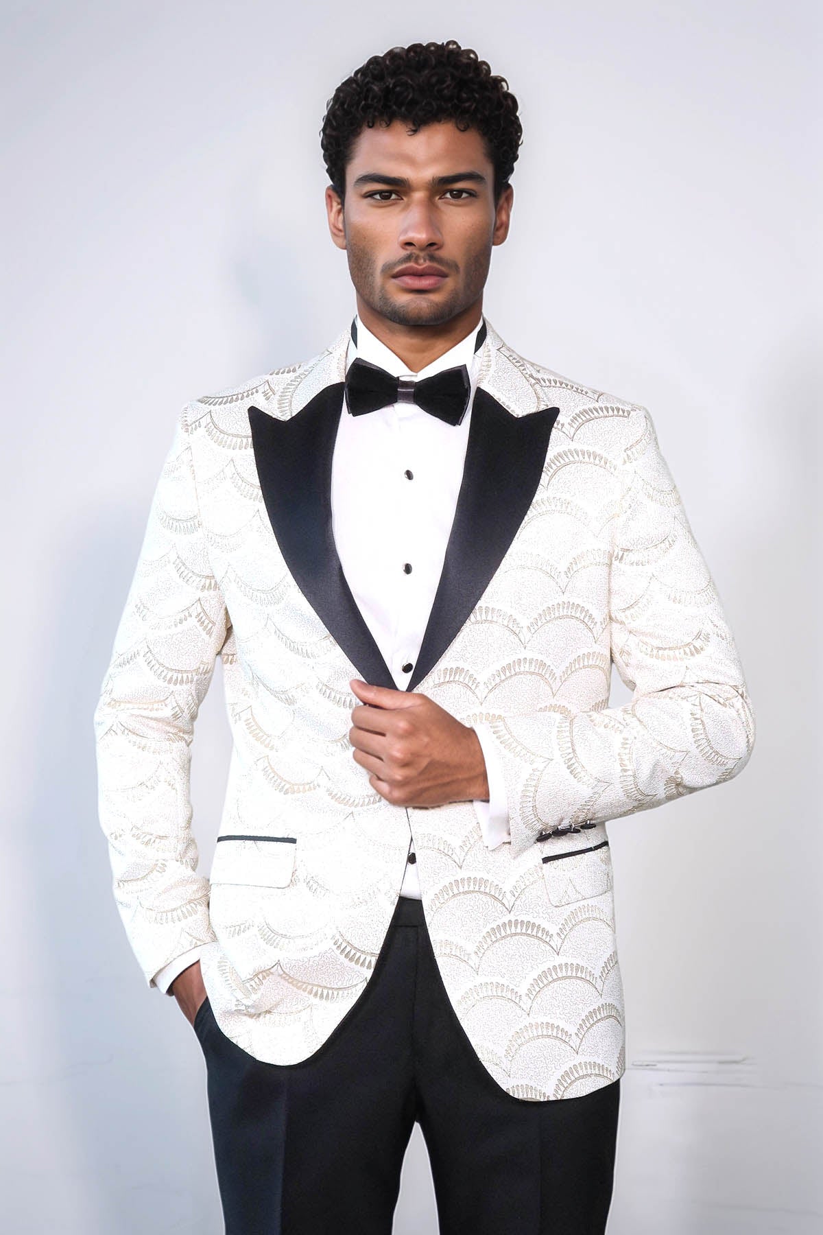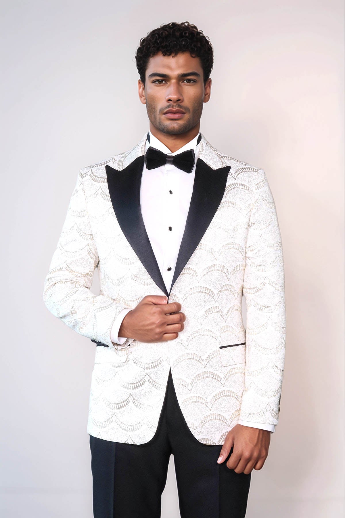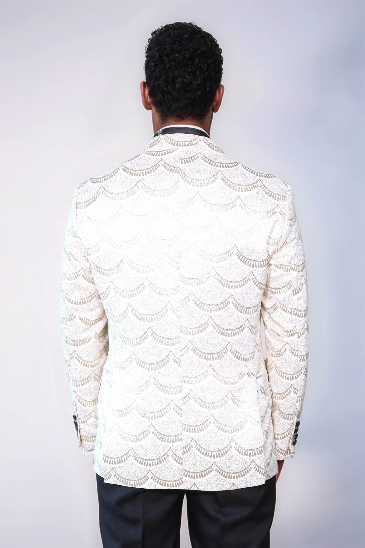 WSS Patterned Slim Fit White Men Dinner Jacket - Coyula