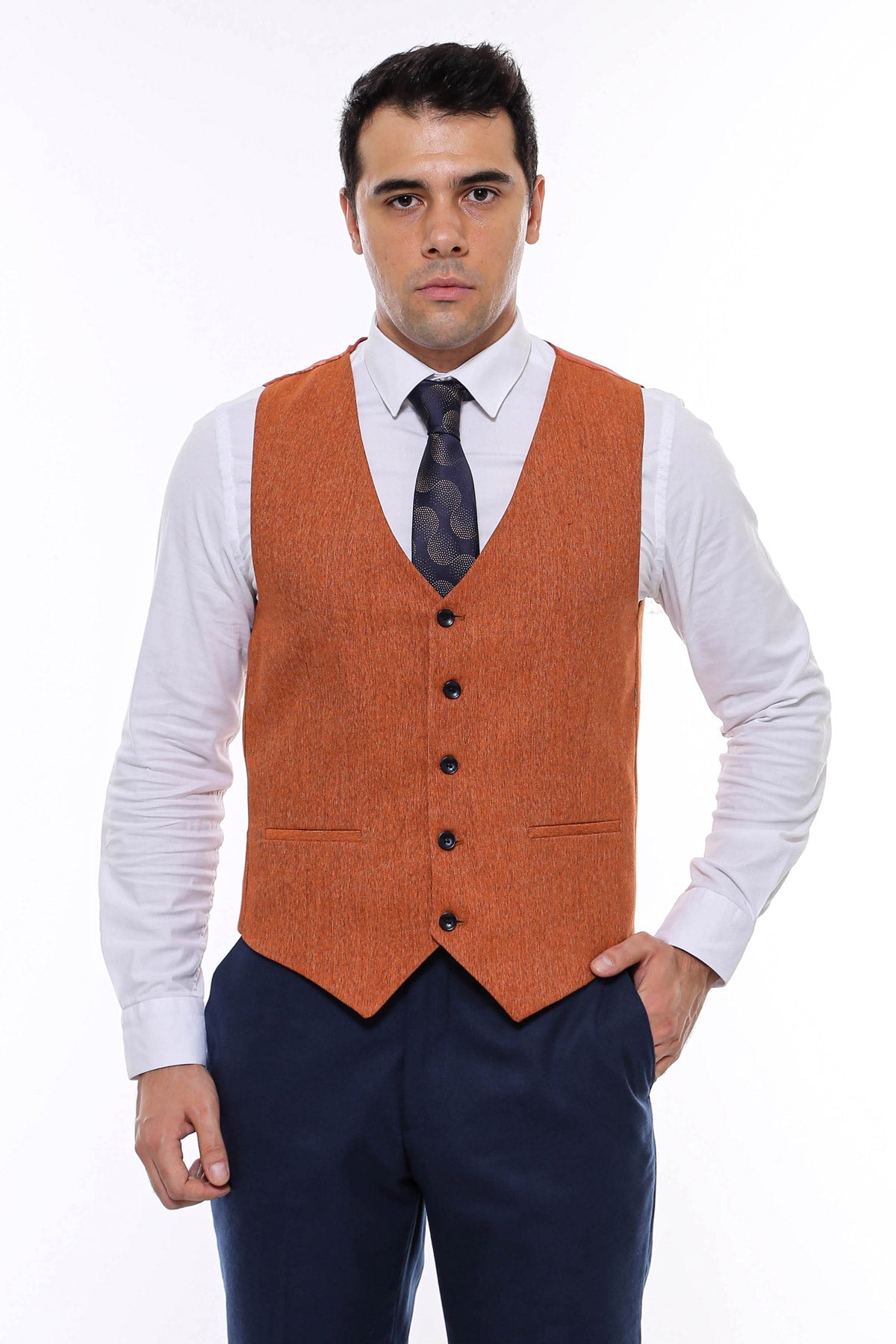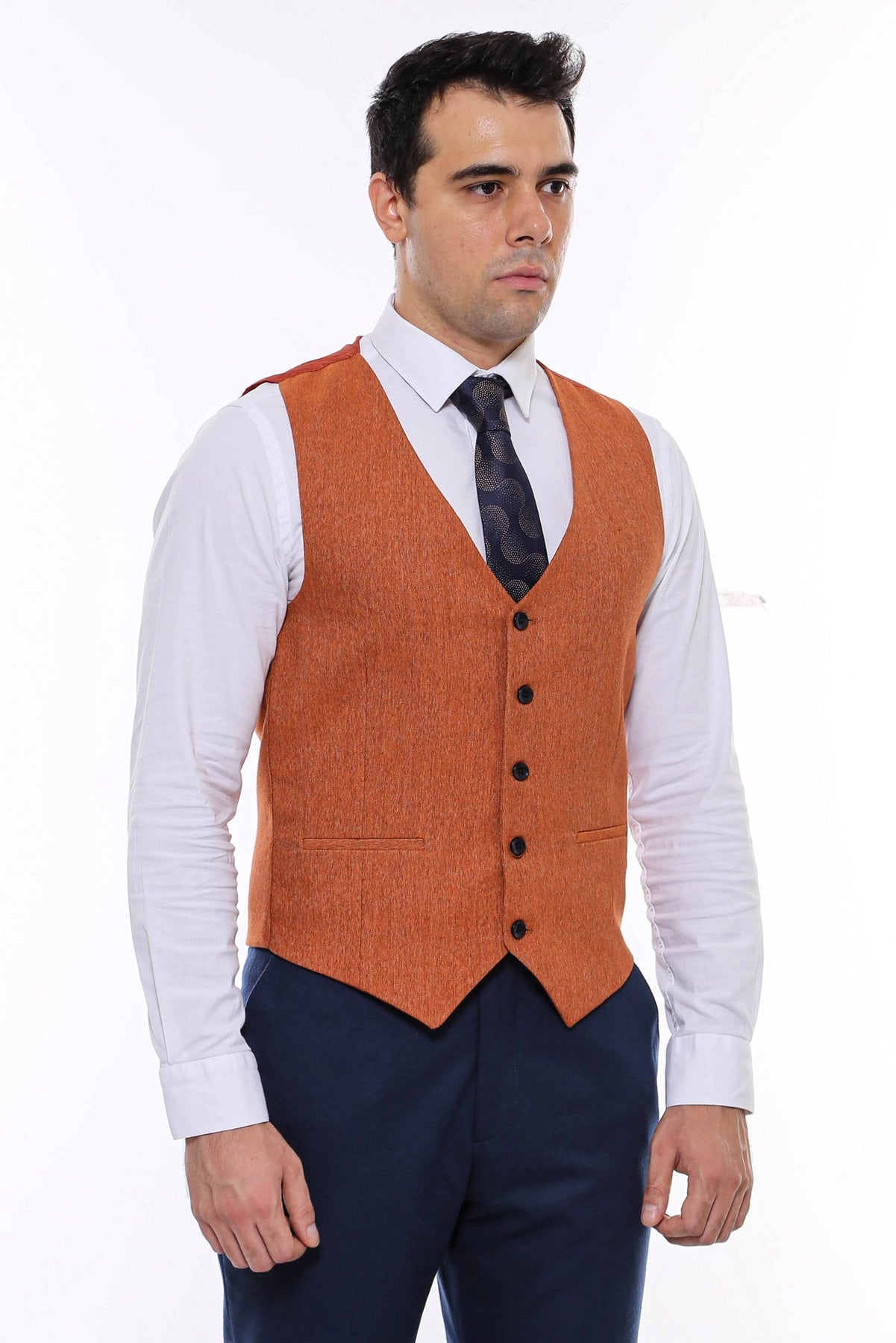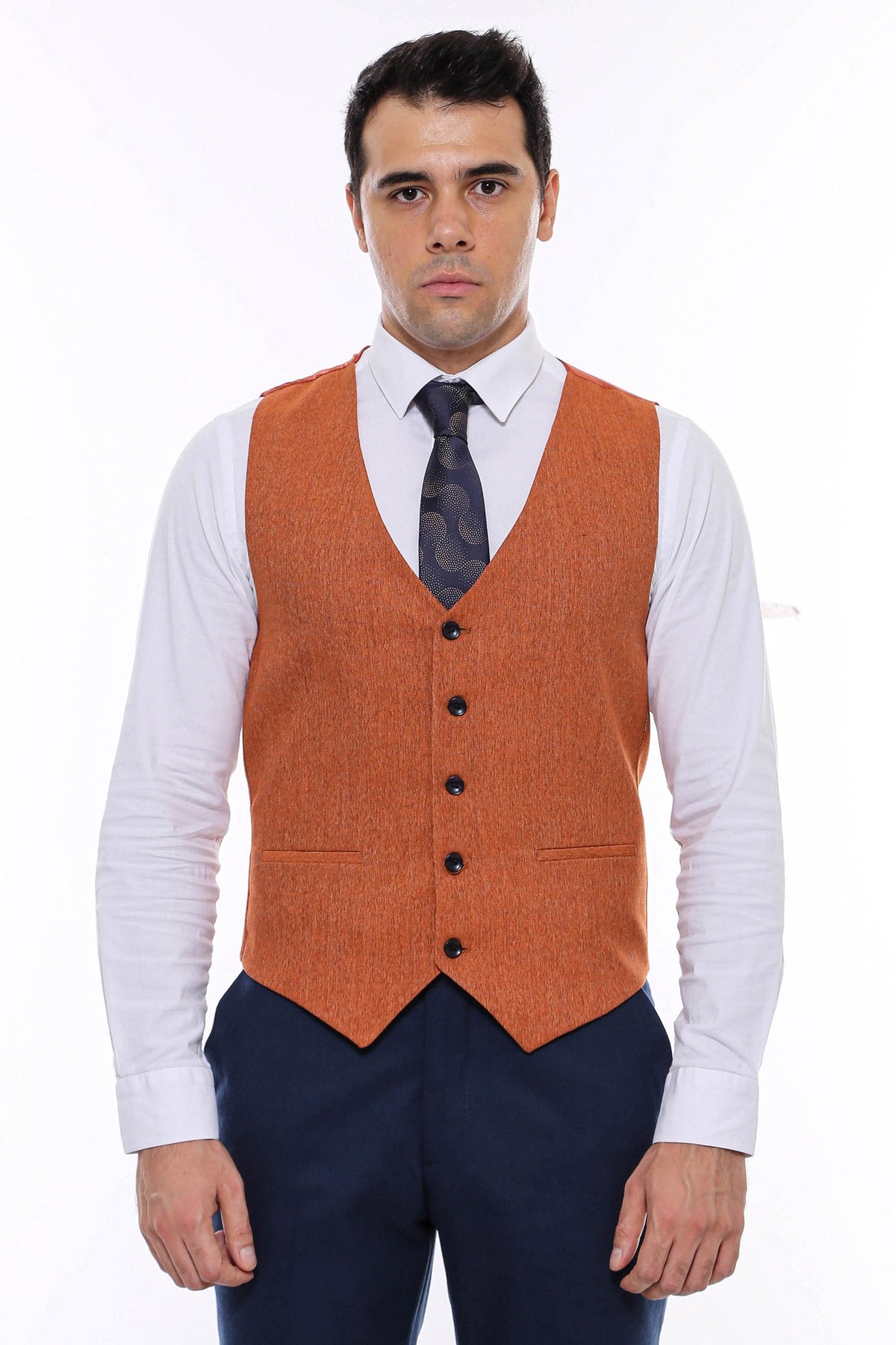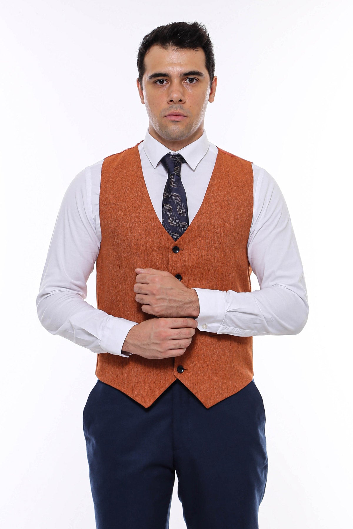 Expertly crafted in a striking orange hue, this V-neck vest for men from Wessi is the perfect addition to any wardrobe. Made with the finest materials, it offers a comfortable fit and versatile styling options. Elevate your style game and make a statement with this must-have piece.
